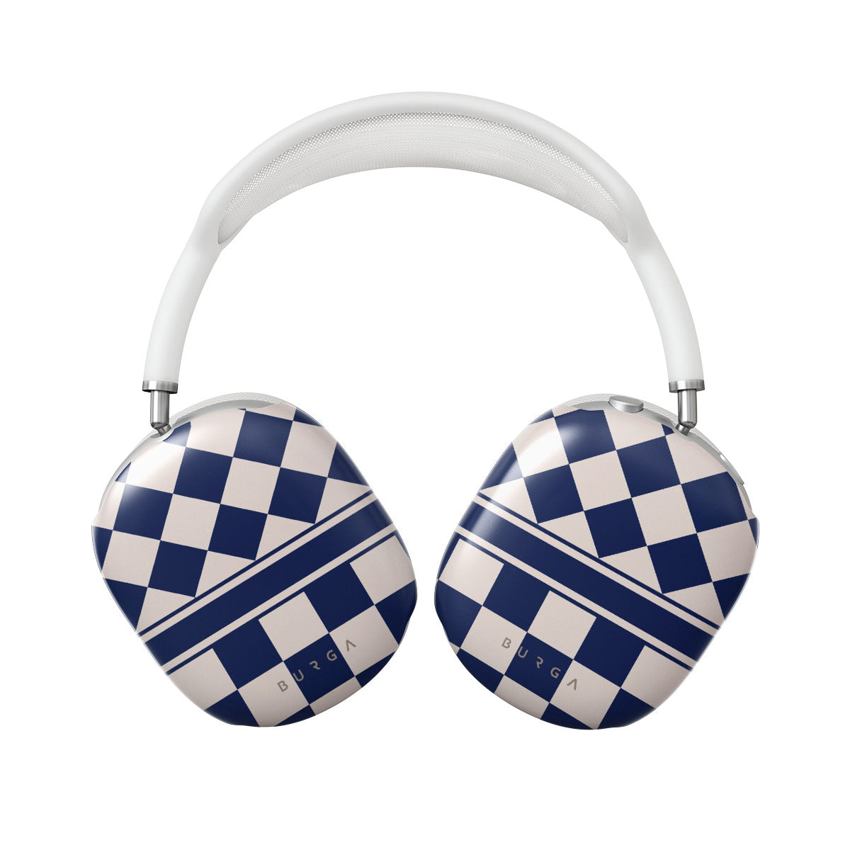 Embrace the essence of subtle luxury with our Check & Mate Apple AirPods Max case cover design. Blending eggshell and deep blue checkers, it evokes whispers of elegance. While diamonds grace the upper half, the lower half features a timeless chessboard pattern.