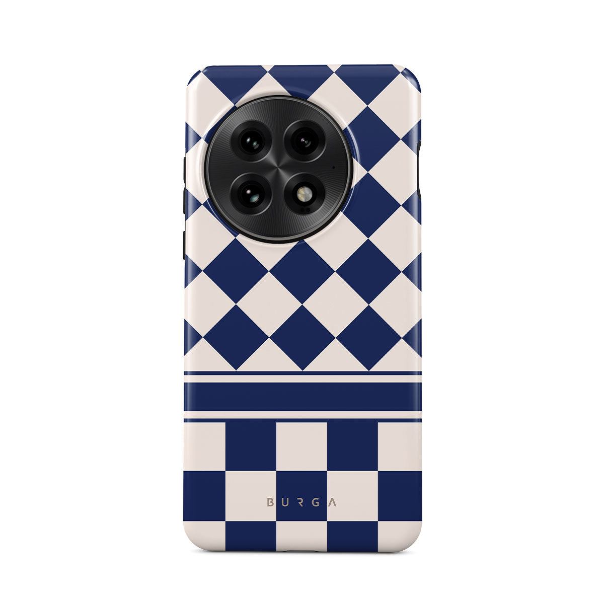 Embrace the essence of subtle luxury with our Check & Mate OnePlus 13 phone case design. Blending eggshell and deep blue checkers, it evokes whispers of elegance. While diamonds grace the upper half, the lower half features a timeless chessboard pattern.