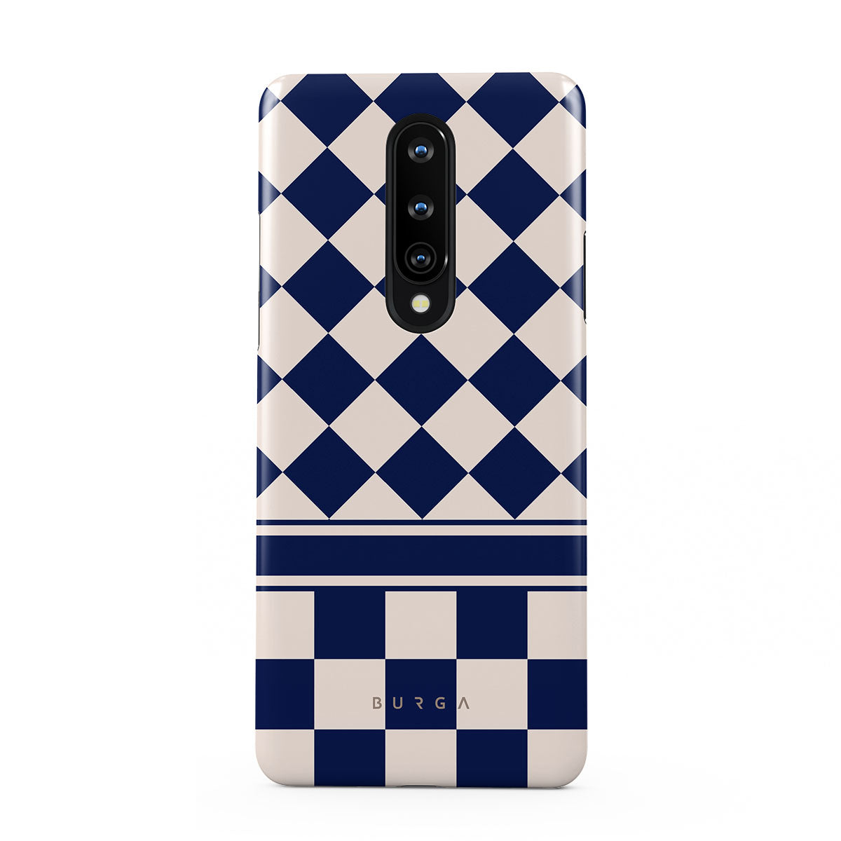 Embrace the essence of subtle luxury with our Check & Mate OnePlus 8 phone case design. Blending eggshell and deep blue checkers, it evokes whispers of elegance. While diamonds grace the upper half, the lower half features a timeless chessboard pattern.