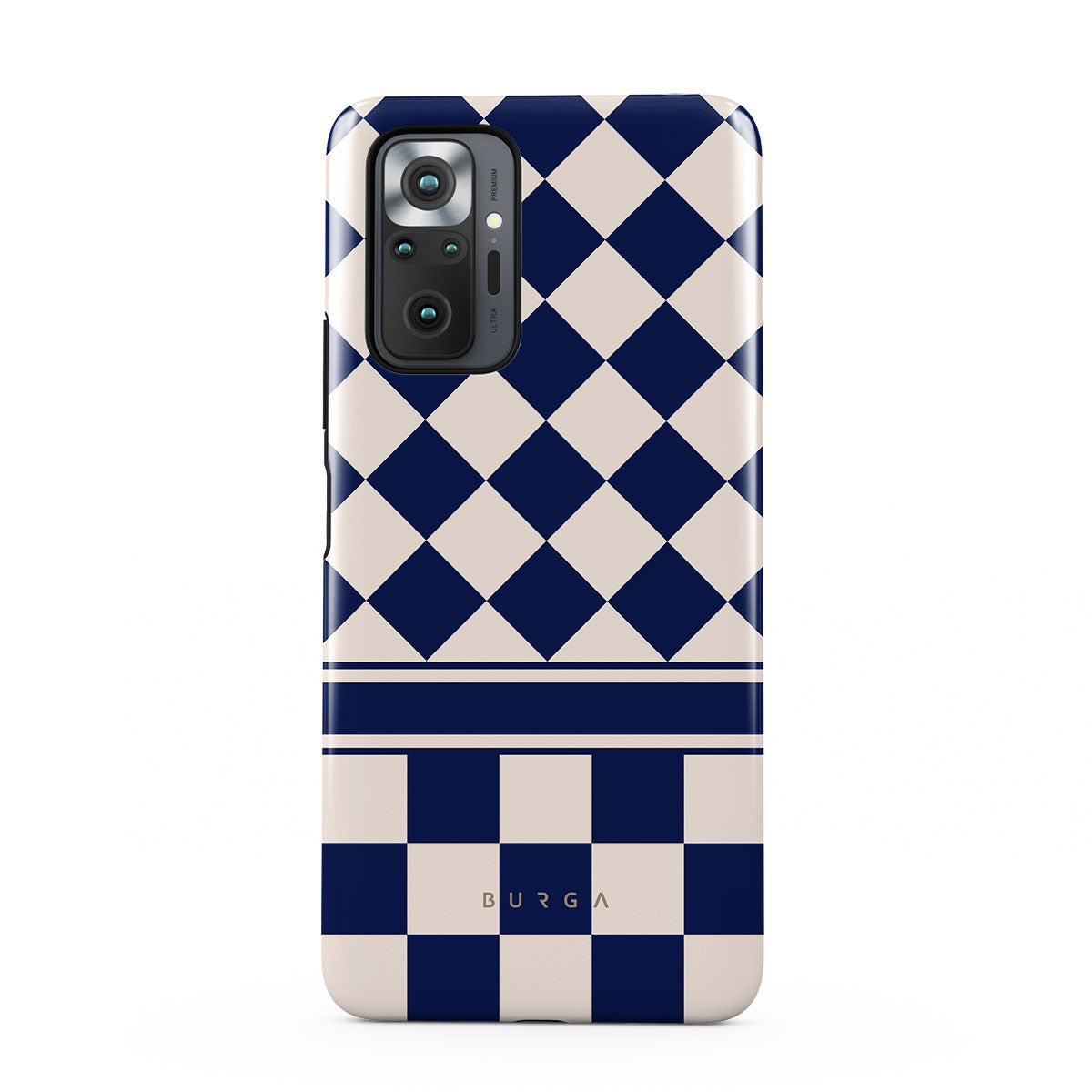 Embrace the essence of subtle luxury with our Check & Mate Xiaomi Redmi Note 10 Pro phone case design. Blending eggshell and deep blue checkers, it evokes whispers of elegance. While diamonds grace the upper half, the lower half features a timeless chessboard pattern.