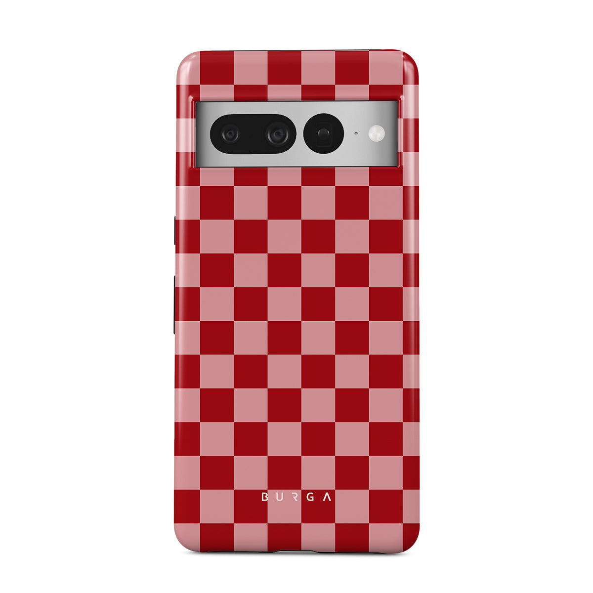 Bold, strong, and never on hold! Our Cheerleader - Google Pixel 7 Pro phone case design will turn your phone into the perfect accessory! The red checkered pattern adds that additional spark to your style while keeping your phone safe and sound in its perfect hard-shell case.