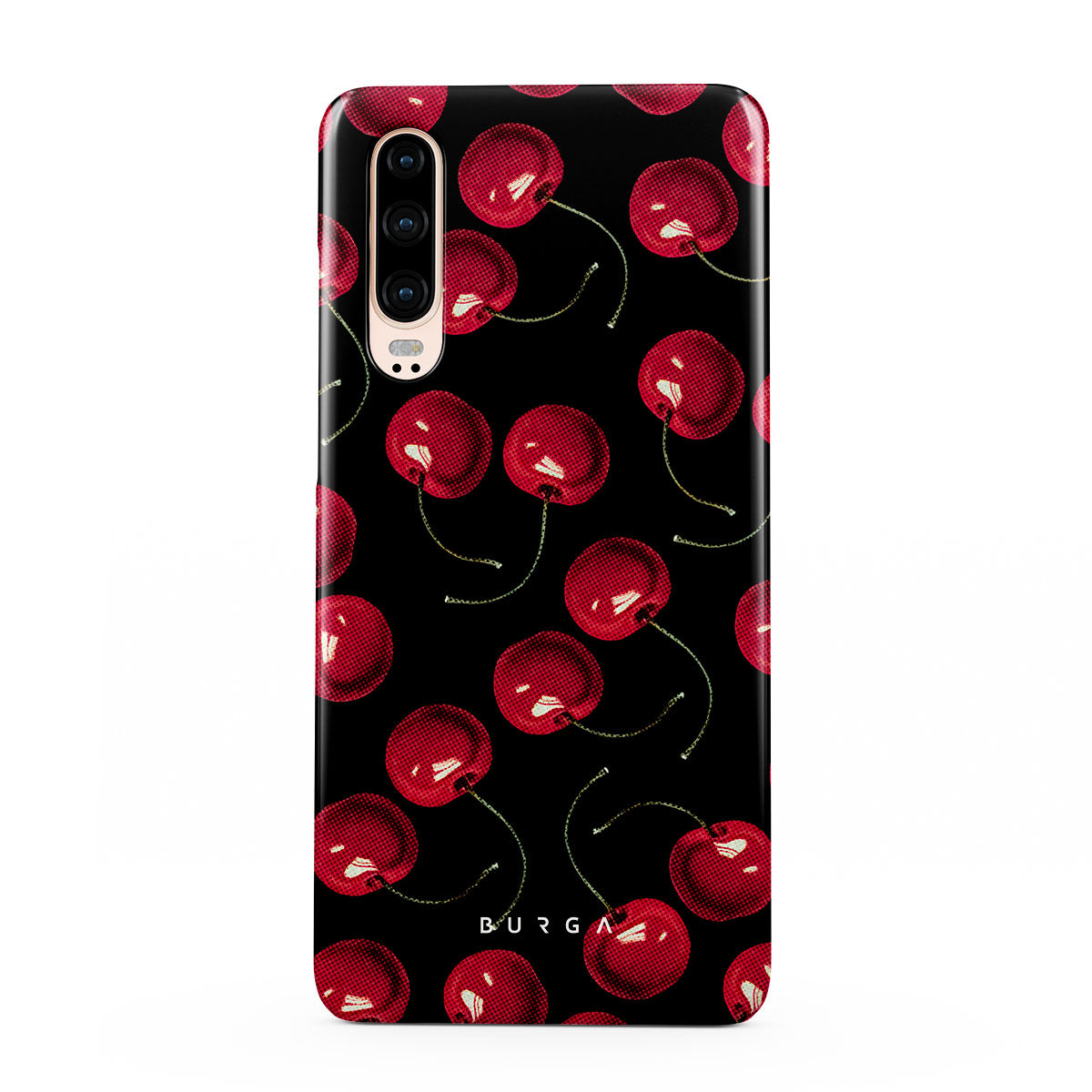 On a deep black background, rich red cherries stand out. Tempting and audacious, our Cherrybomb Huawei P30 phone case design is perfect for anyone who likes to keep things simple yet striking.