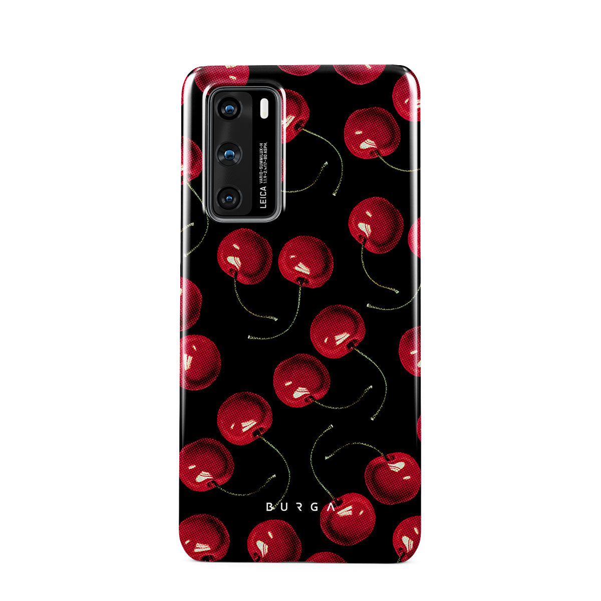 On a deep black background, rich red cherries stand out. Tempting and audacious, our Cherrybomb Huawei P40 phone case design is perfect for anyone who likes to keep things simple yet striking.