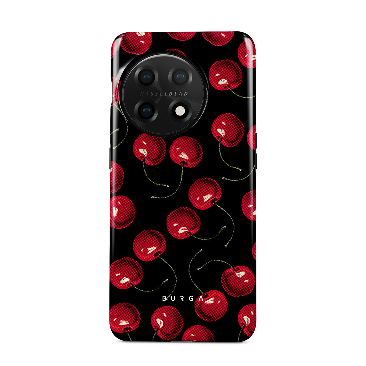 On a deep black background, rich red cherries stand out. Tempting and audacious, our Cherrybomb OnePlus 11 phone case design is perfect for anyone who likes to keep things simple yet striking.
