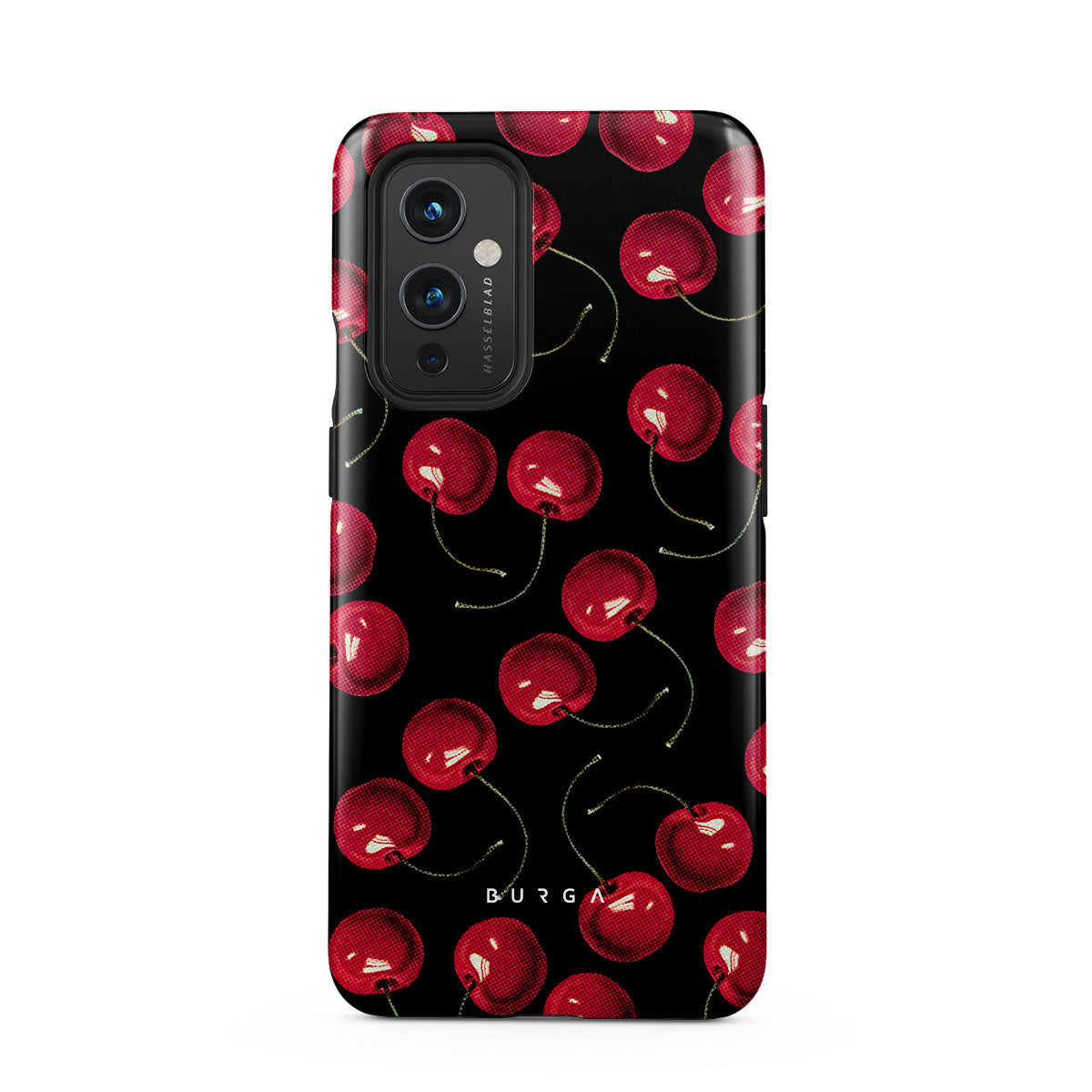 On a deep black background, rich red cherries stand out. Tempting and audacious, our Cherrybomb OnePlus 9 phone case design is perfect for anyone who likes to keep things simple yet striking.