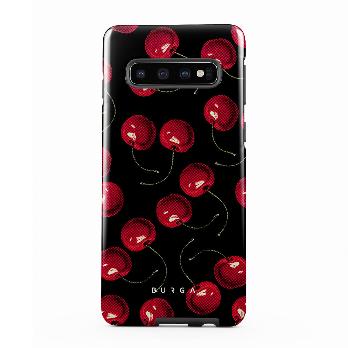 On a deep black background, rich red cherries stand out. Tempting and audacious, our Cherrybomb Samsung Galaxy S10 4G phone case design is perfect for anyone who likes to keep things simple yet striking.