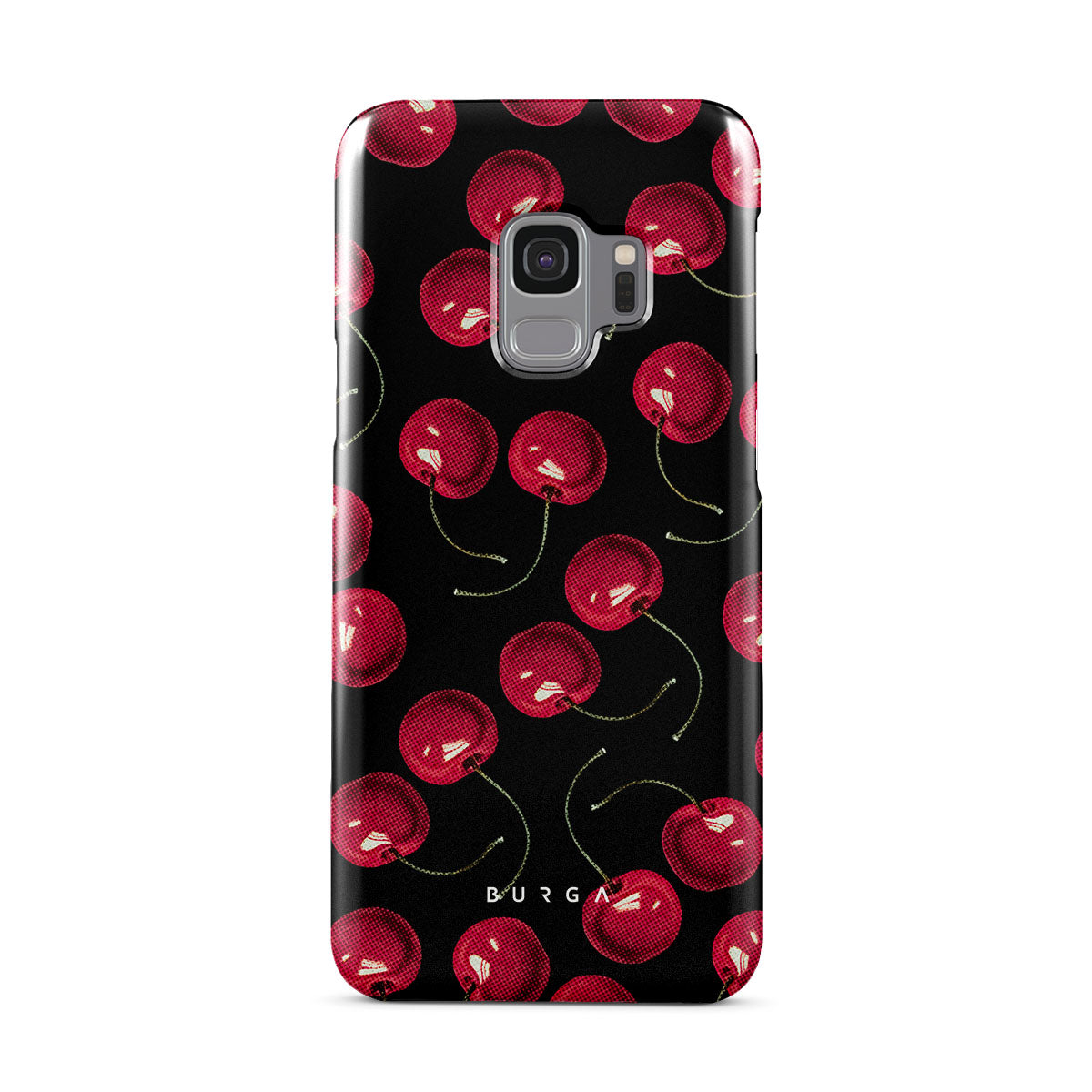On a deep black background, rich red cherries stand out. Tempting and audacious, our Cherrybomb Samsung Galaxy S9 phone case design is perfect for anyone who likes to keep things simple yet striking.