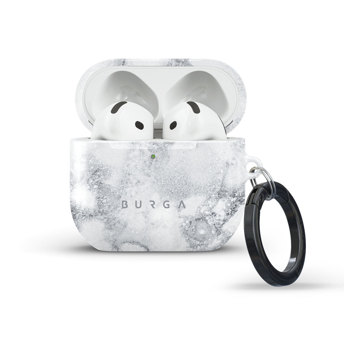 Our beautiful White Winter Apple AirPods 4 case cover showcases a classy marble pattern where white meets black is a timeless piece needed in every collection of a true accessory enthusiast. Allow this case to add style to your AirPods case while also taking care of the much-needed protection. Our case fits perfectly snug around Apple AirPods 4 . “Like a glove!” one might say. And it won’t disrupt the wireless charging capabilities of the newer model. There’s even an LED light indicator to prove it (don’t worry, wired charging still works, too). When fitted, the BURGA case will protect the delicate Apple AirPods 4 case beneath it from scratches, bumps, and drops while remaining scratch-free itself. Our signature design pattern prints are High Quality, and will never peel or fade away- thanks to our unique printing technology. And finally, a handy carabiner is there to make your life easier and more convenient: just snap it around your keys or belt loop and tackle the day head-on. Your music is right there by your side when you need it.