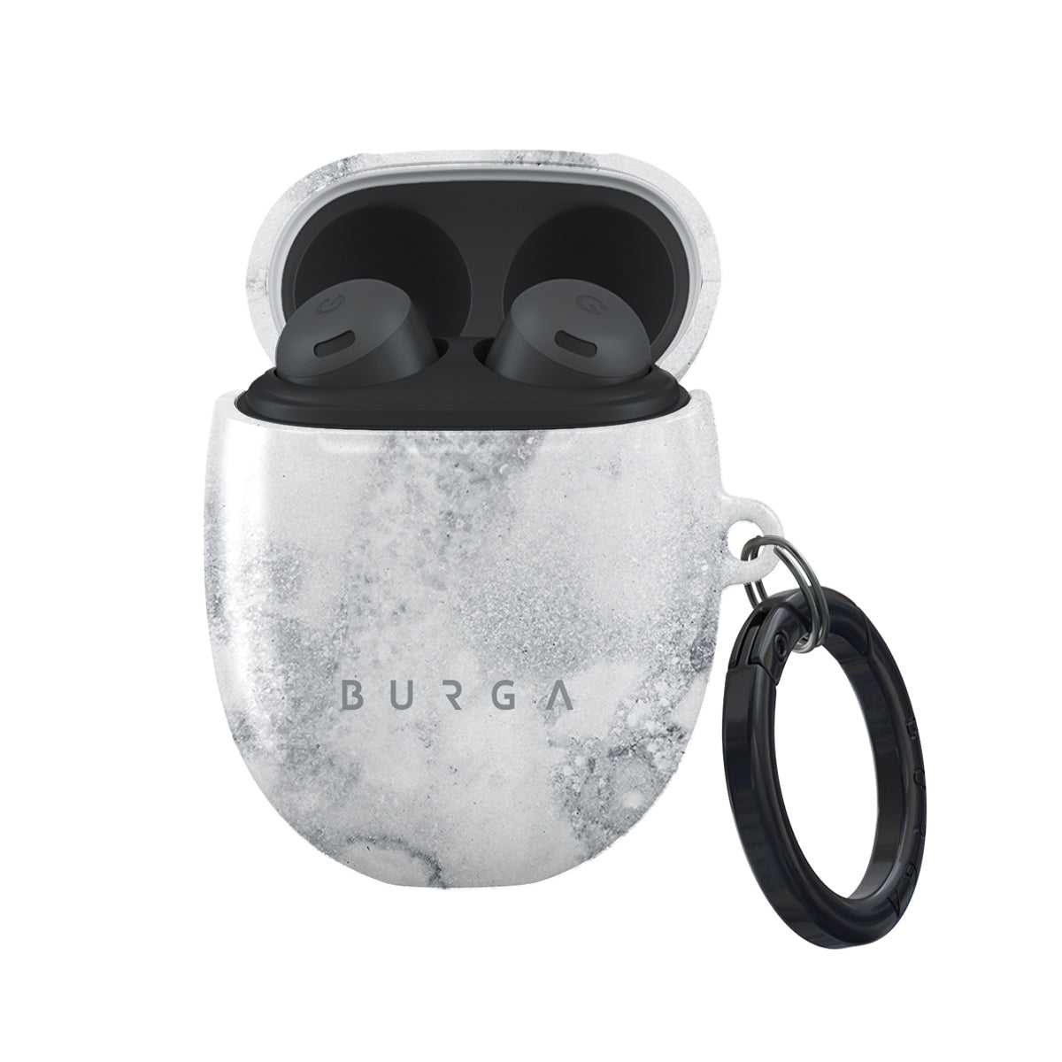 Our beautiful White Winter Google Pixel Buds Pro case cover showcases a classy marble pattern where white meets black is a timeless piece needed in every collection of a true accessory enthusiast. Allow this case to add style to your Google Pixel Buds Pro case while also taking care of the much-needed protection. Our case fits perfectly snug around Google Pixel Buds Pro . “Like a glove!” one might say. And it won’t disrupt the wireless charging capabilities of the newer model. There’s even an LED light indicator to prove it (don’t worry, wired charging still works, too). When fitted, the BURGA case will protect the delicate Google Pixel Buds Pro case beneath it from scratches, bumps, and drops while remaining scratch-free itself. Our signature design pattern prints are High Quality, and will never peel or fade away- thanks to our unique printing technology. And finally, a handy carabiner is there to make your life easier and more convenient: just snap it around your keys or belt loop and tackle the day head-on. Your music is right there by your side when you need it.