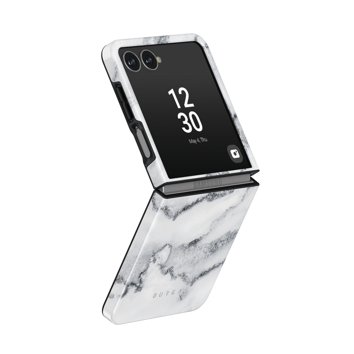 Our beautiful White Winter Samsung Galaxy Z Flip 7 phone case is a genuine white marble dream. The classy marble pattern where white meets black is a timeless piece needed in every collection of a true accessory enthusiast. Allow this case to add style to your phone while also taking care of the much-needed protection.