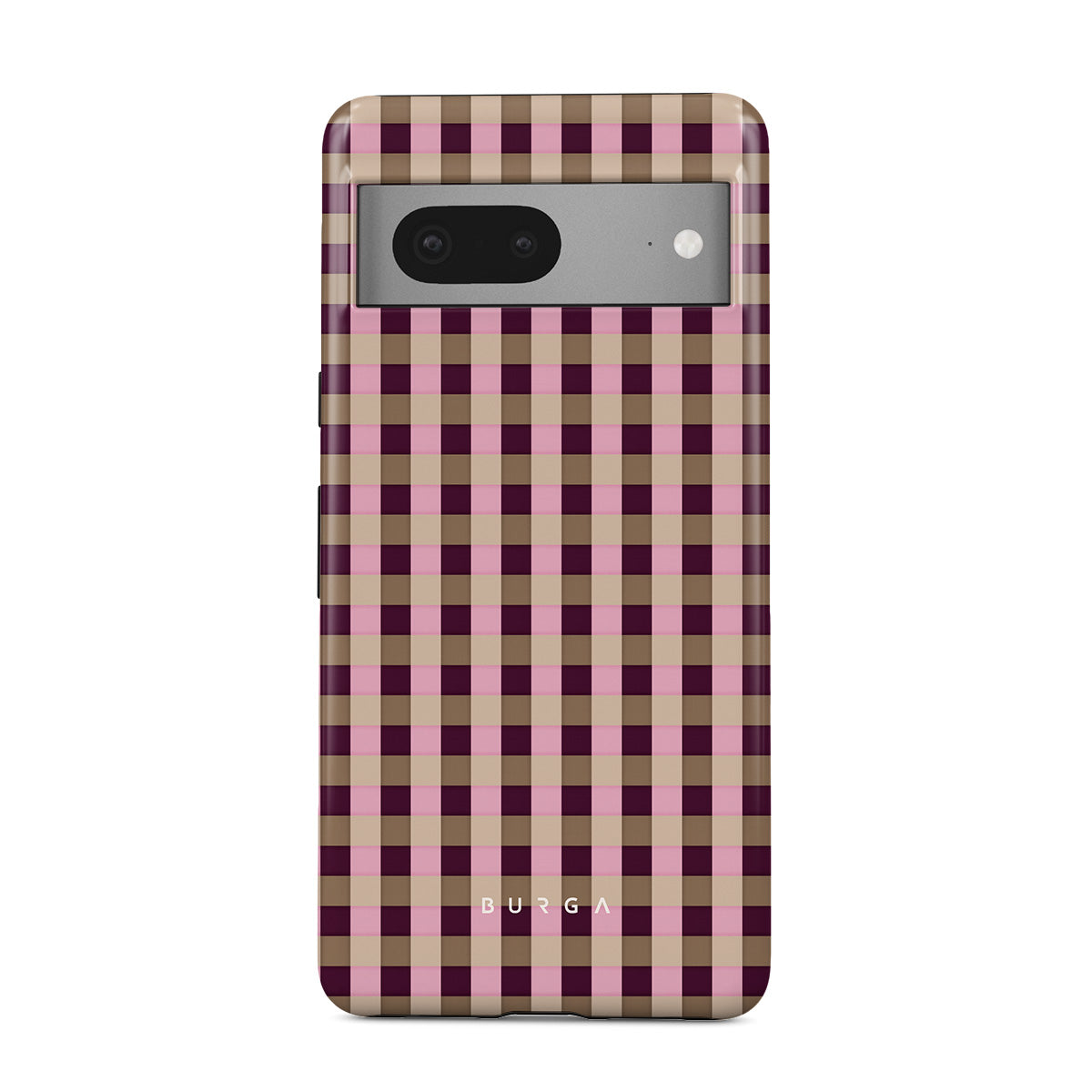 This design features: pink and burgundy plaid pattern, modern checkered style.