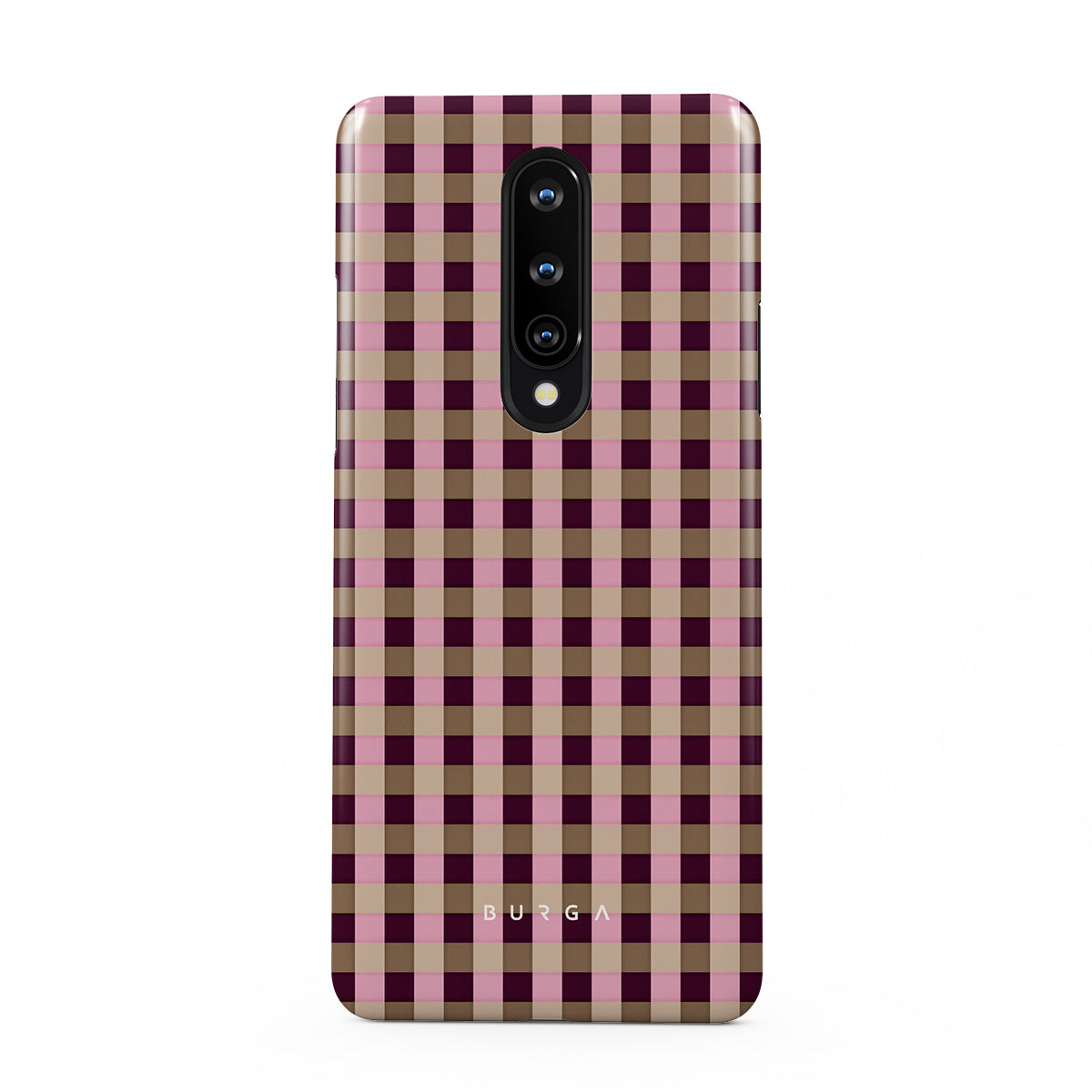 This design features: pink and burgundy plaid pattern, modern checkered style.
