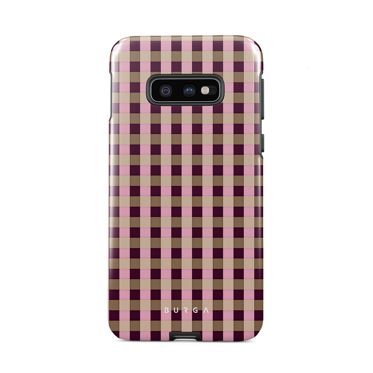 This design features: pink and burgundy plaid pattern, modern checkered style.
