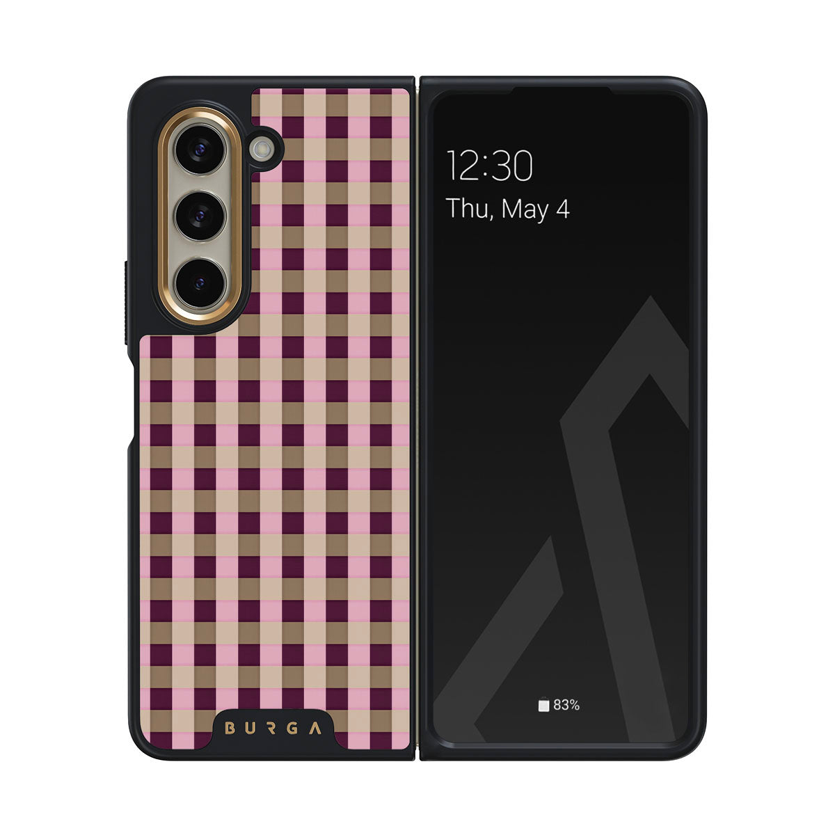 This design features: pink and burgundy plaid pattern, modern checkered style.