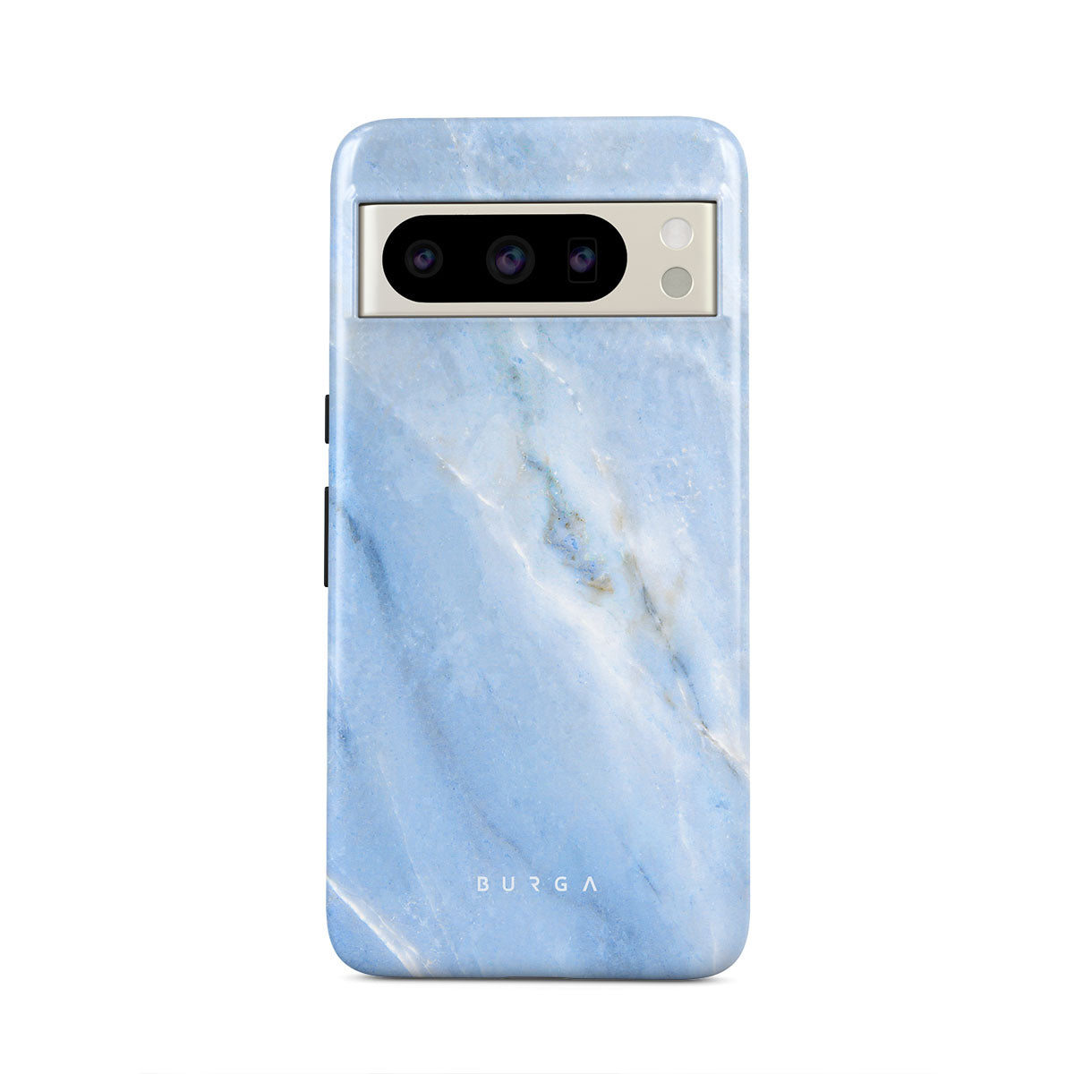 Bright, blue, and beautiful. The sky surrounds us all. Look up, remember and cherish the days of laying on the grass and counting the clouds. Take this feeling of vivid imagination with a protective Google Pixel 8 Pro phone case designed and inspired by the shapeshifting clouds.