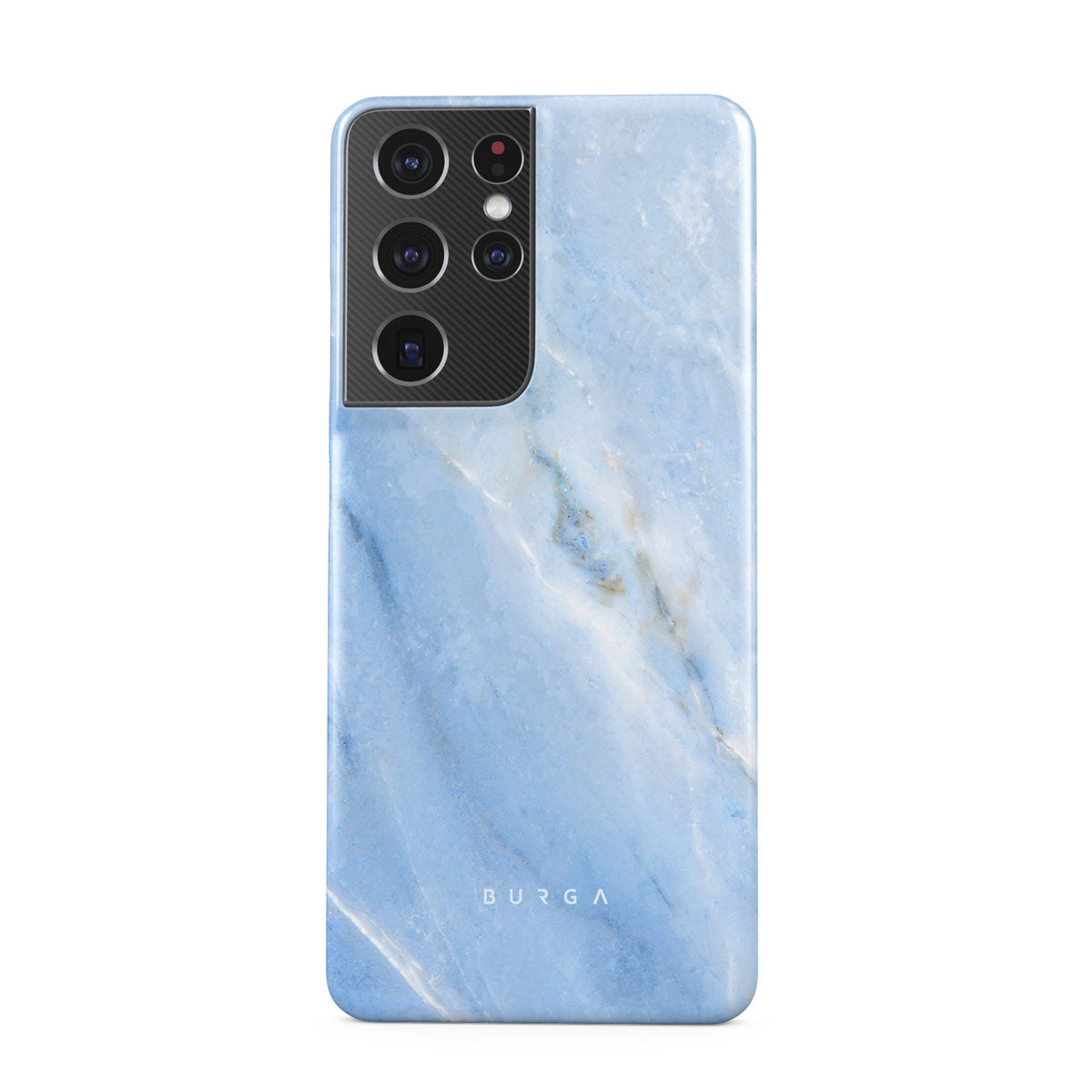 Bright, blue, and beautiful. The sky surrounds us all. Look up, remember and cherish the days of laying on the grass and counting the clouds. Take this feeling of vivid imagination with a protective Samsung Galaxy S21 Ultra phone case designed and inspired by the shapeshifting clouds.