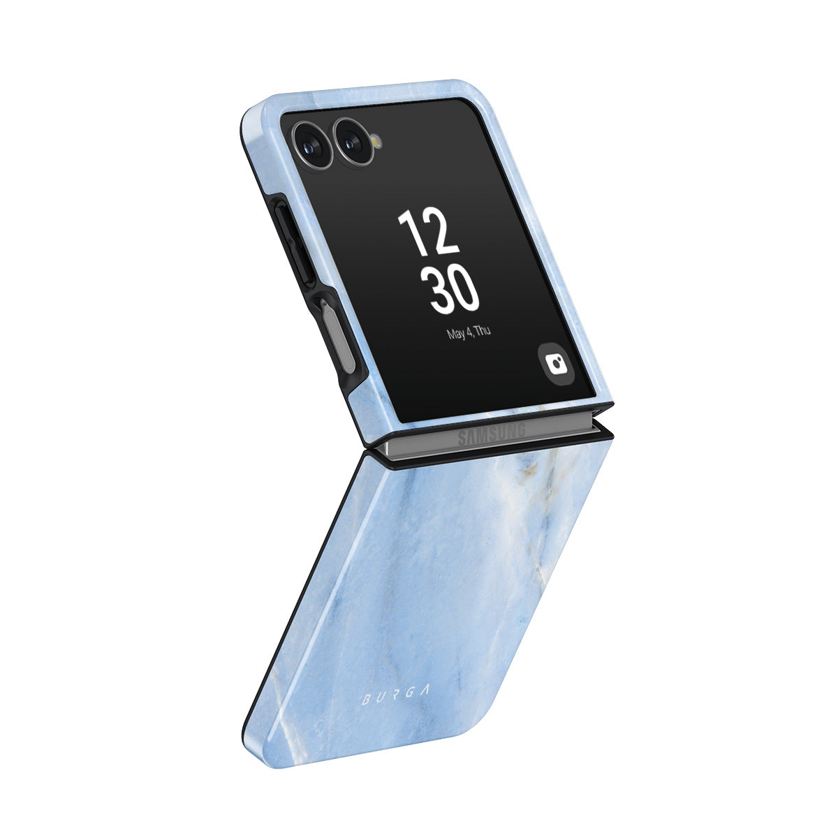 Bright, blue, and beautiful. The sky surrounds us all. Look up, remember and cherish the days of laying on the grass and counting the clouds. Take this feeling of vivid imagination with a protective Samsung Galaxy Z Flip 7 phone case designed and inspired by the shapeshifting clouds.