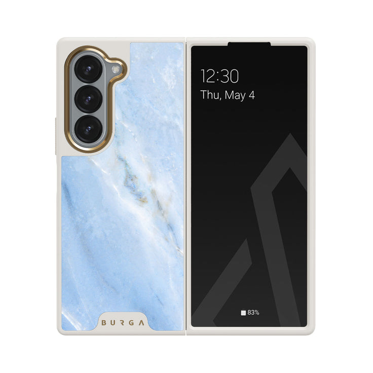 Bright, blue, and beautiful. The sky surrounds us all. Look up, remember and cherish the days of laying on the grass and counting the clouds. Take this feeling of vivid imagination with a protective Samsung Galaxy Z Fold 6 phone case designed and inspired by the shapeshifting clouds.