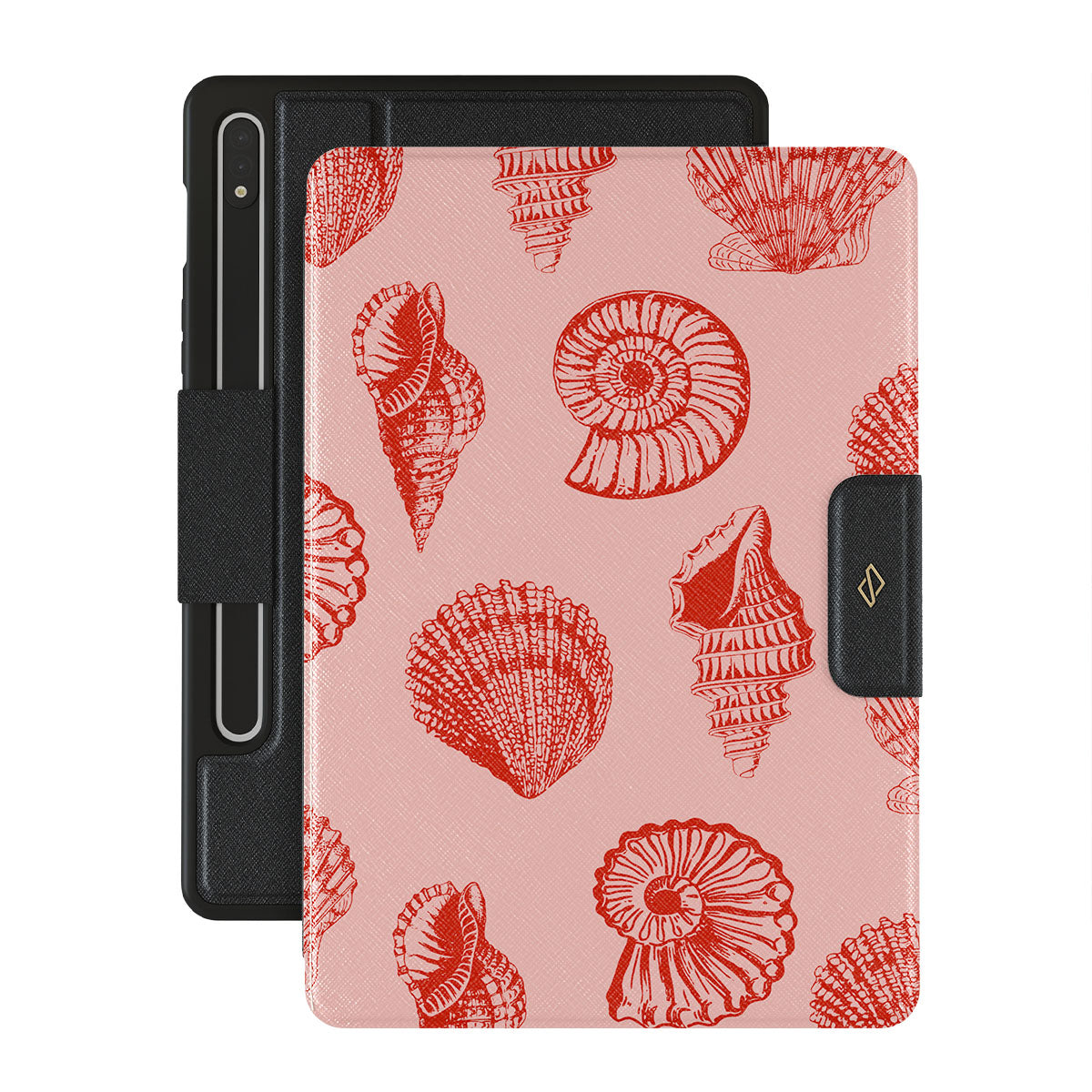 With a palette of soft pinks and an assortment of shells adorning the piece, our Coastal Treasure [product] Samsung Galaxy Tab S10+ folio case design invokes the calming feel of a day spent by the shore. Like the countless hidden gems discovered along the coast, each shell is unique and distinct, adding to the charm of the design.
