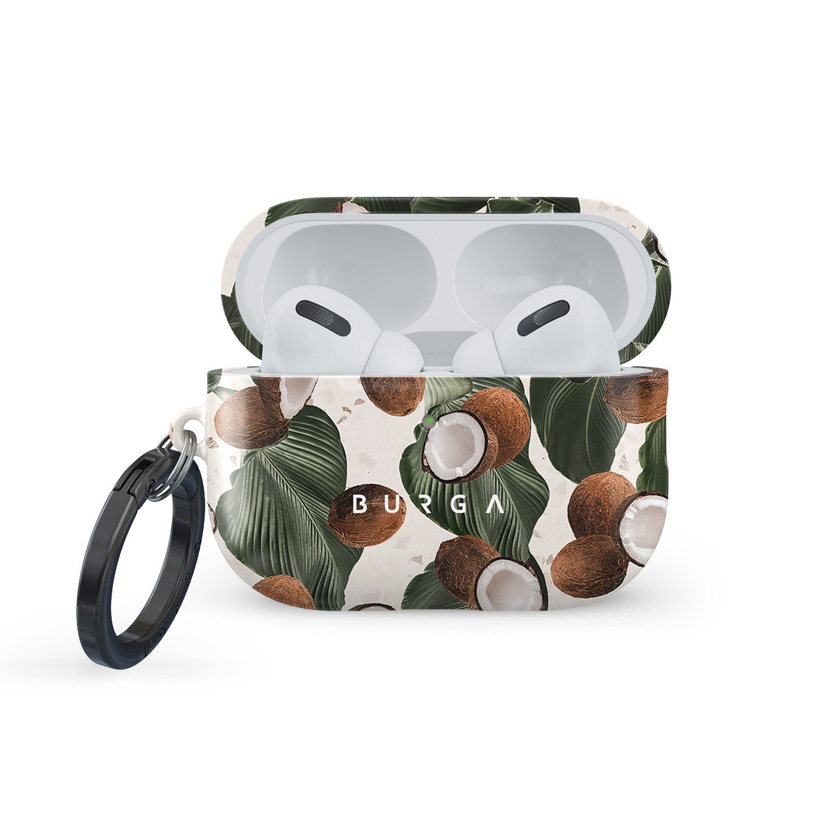 Coconut Crush Apple AirPods Pro 3 case cover combines a soft creme color with a playful coconut pattern addition on top. The unexpected design duo will add a touch of tropical playfulness to your style while offering a 360° protection for your AirPods Pro 3 case. Our case fits perfectly snug around Apple AirPods Pro 3 . “Like a glove!” one might say. And it won’t disrupt the wireless charging capabilities of the newer model. There’s even an LED light indicator to prove it (don’t worry, wired charging still works, too). When fitted, the BURGA case will protect the delicate Apple AirPods Pro 3 case beneath it from scratches, bumps, and drops while remaining scratch-free itself. Our signature design pattern prints are High Quality, and will never peel or fade away- thanks to our unique printing technology. And finally, a handy carabiner is there to make your life easier and more convenient: just snap it around your keys or belt loop and tackle the day head-on. Your music is right there by your side when you need it.