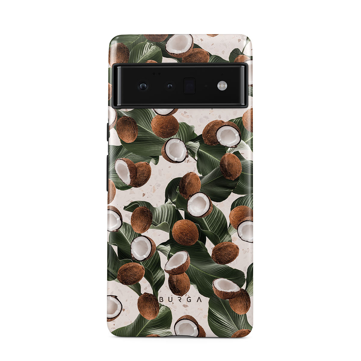 Coconut Crush Google Pixel 6 Pro phone case showcases a soft creme color design with a playful addition of coconuts on top. The unexpected design duo will add a touch of tropical playfulness to your style while offering heavy-duty protection for your cell phone.