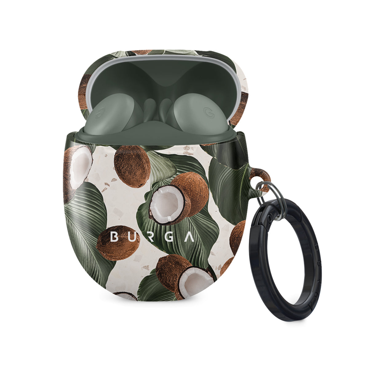Coconut Crush Google Pixel Buds A case cover combines a soft creme color with a playful coconut pattern addition on top. The unexpected design duo will add a touch of tropical playfulness to your style while offering a 360° protection for your Google Pixel Buds A case. Our case fits perfectly snug around Google Pixel Buds A . “Like a glove!” one might say. And it won’t disrupt the wireless charging capabilities of the newer model. There’s even an LED light indicator to prove it (don’t worry, wired charging still works, too). When fitted, the BURGA case will protect the delicate Google Pixel Buds A case beneath it from scratches, bumps, and drops while remaining scratch-free itself. Our signature design pattern prints are High Quality, and will never peel or fade away- thanks to our unique printing technology. And finally, a handy carabiner is there to make your life easier and more convenient: just snap it around your keys or belt loop and tackle the day head-on. Your music is right there by your side when you need it.