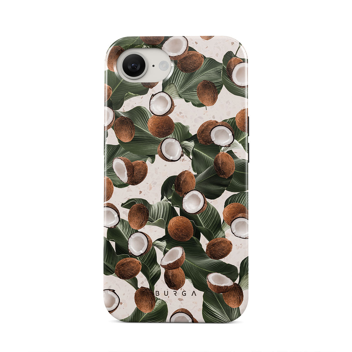 Coconut Crush iPhone 16e phone case showcases a soft creme color design with a playful addition of coconuts on top. The unexpected design duo will add a touch of tropical playfulness to your style while offering heavy-duty protection for your cell phone.