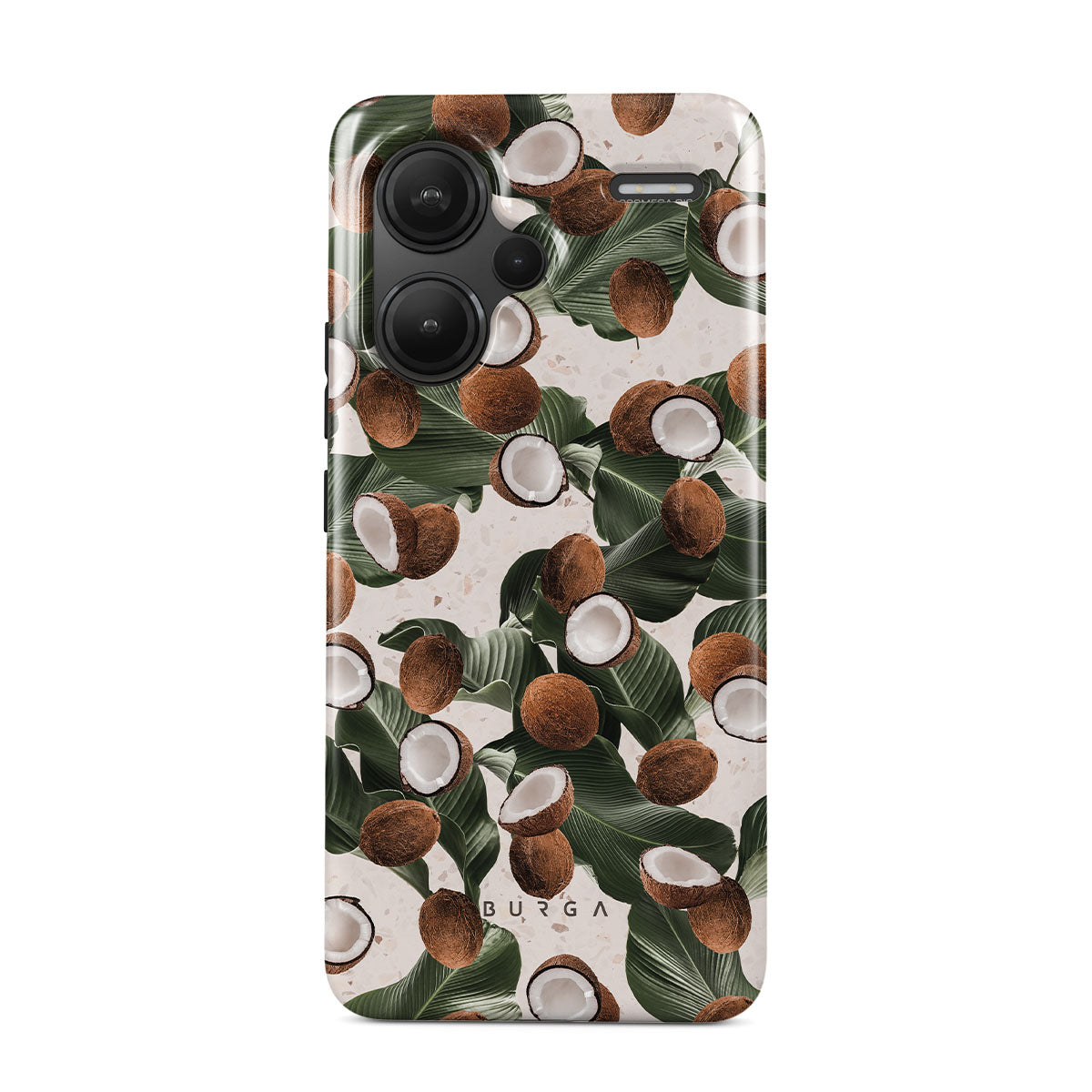 Coconut Crush Xiaomi Redmi Note 13 Pro+ 5G phone case showcases a soft creme color design with a playful addition of coconuts on top. The unexpected design duo will add a touch of tropical playfulness to your style while offering heavy-duty protection for your cell phone.