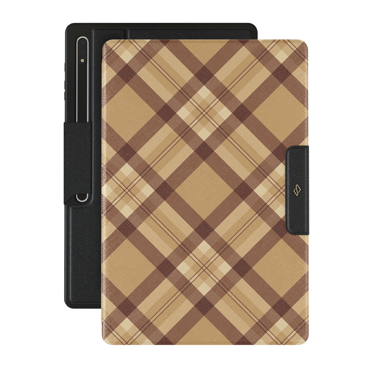 Effortlessly sleek, just like your office downtime, our Coffee Break Samsung Galaxy Tab S8 Ultra folio case design is the perfect balance of style for those who stay sharp between meetings. The beige background with soft diagonal plaid adds just the right depth.