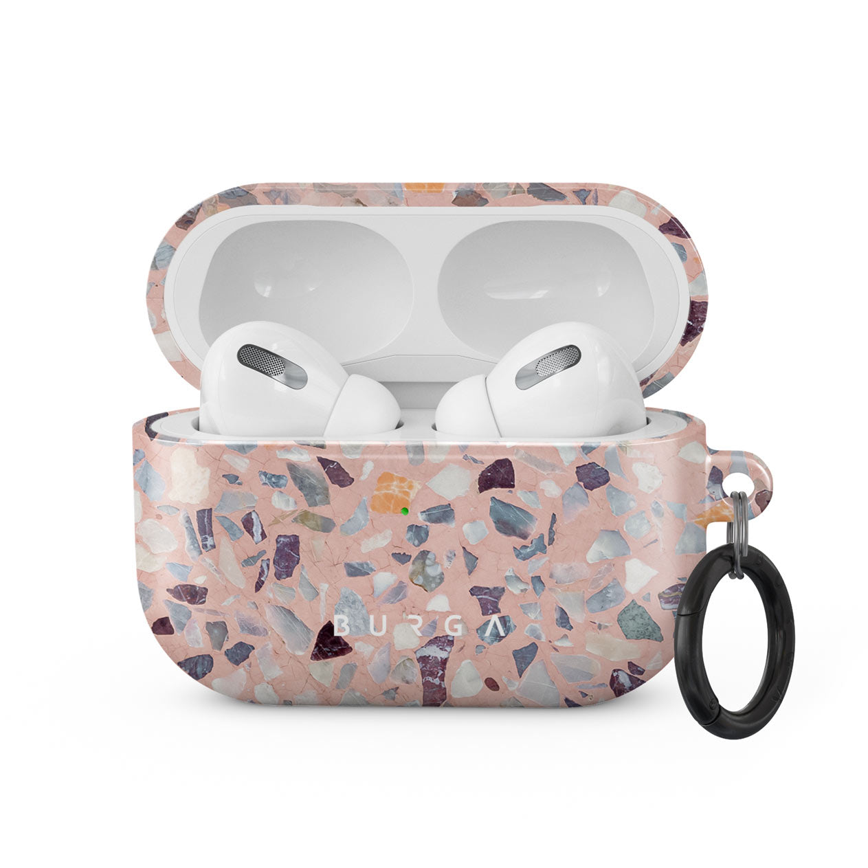 This terrazzo-inspired and very colorful Apple Airpods Pro case cover will definitely add some playfulness to your device and your style. With the colorful specks reminding of crushed candy, you will make your AirPods stand out. Our case fits perfectly snug around Apple Airpods Pro . “Like a glove!” one might say. And it won’t disrupt the wireless charging capabilities of the newer model. There’s even an LED light indicator to prove it (don’t worry, wired charging still works, too). When fitted, the BURGA case will protect the delicate Apple Airpods Pro case beneath it from scratches, bumps, and drops while remaining scratch-free itself. Our signature design pattern prints are High Quality, and will never peel or fade away- thanks to our unique printing technology. And finally, a handy carabiner is there to make your life easier and more convenient: just snap it around your keys or belt loop and tackle the day head-on. Your music is right there by your side when you need it.