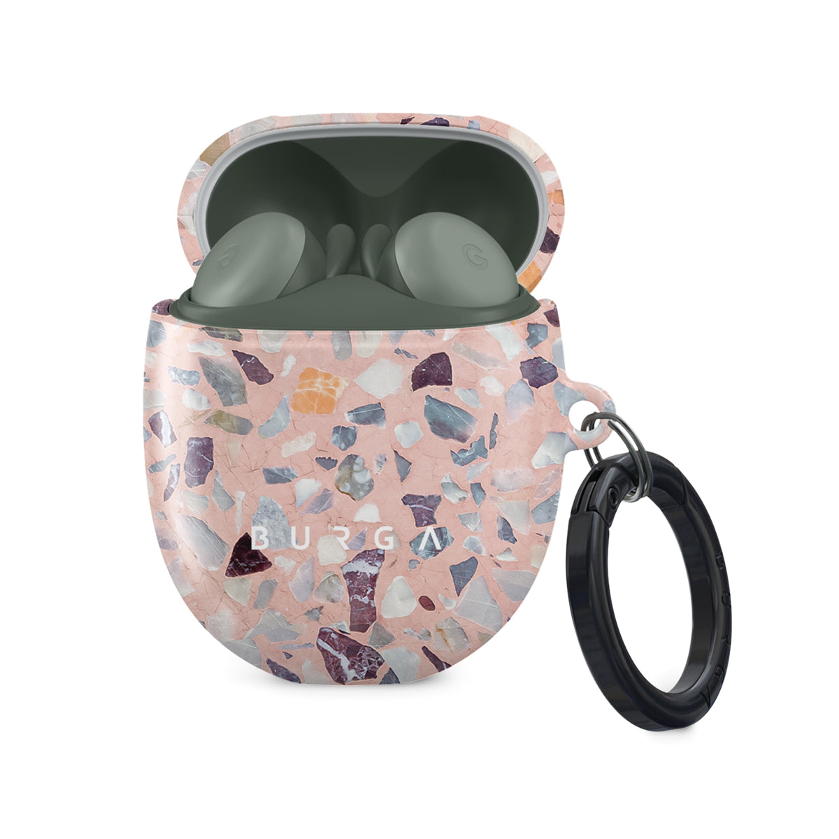 This terrazzo-inspired and very colorful Google Pixel Buds A case cover will definitely add some playfulness to your device and your style. With the colorful specks reminding of crushed candy, you will make your Google Pixel Buds A stand out. Our case fits perfectly snug around Google Pixel Buds A . “Like a glove!” one might say. And it won’t disrupt the wireless charging capabilities of the newer model. There’s even an LED light indicator to prove it (don’t worry, wired charging still works, too). When fitted, the BURGA case will protect the delicate Google Pixel Buds A case beneath it from scratches, bumps, and drops while remaining scratch-free itself. Our signature design pattern prints are High Quality, and will never peel or fade away- thanks to our unique printing technology. And finally, a handy carabiner is there to make your life easier and more convenient: just snap it around your keys or belt loop and tackle the day head-on. Your music is right there by your side when you need it.