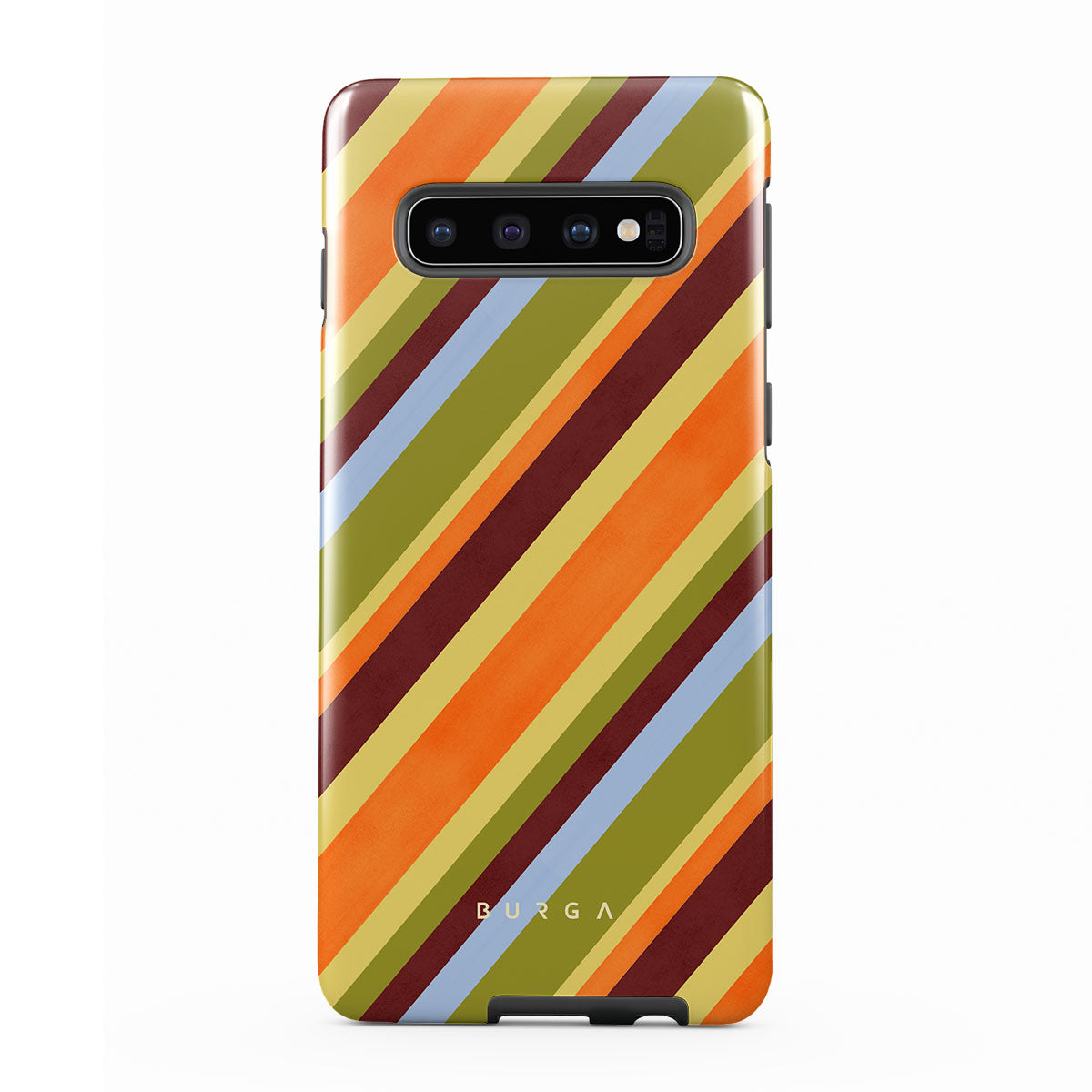 The kind of stripes you’d find on a beach towel left out since noon. Citrus meets spice meets “where’s my other sandal?” The Copacabana Samsung Galaxy S10 4G phone case design: it’s carefree with a side of extra.