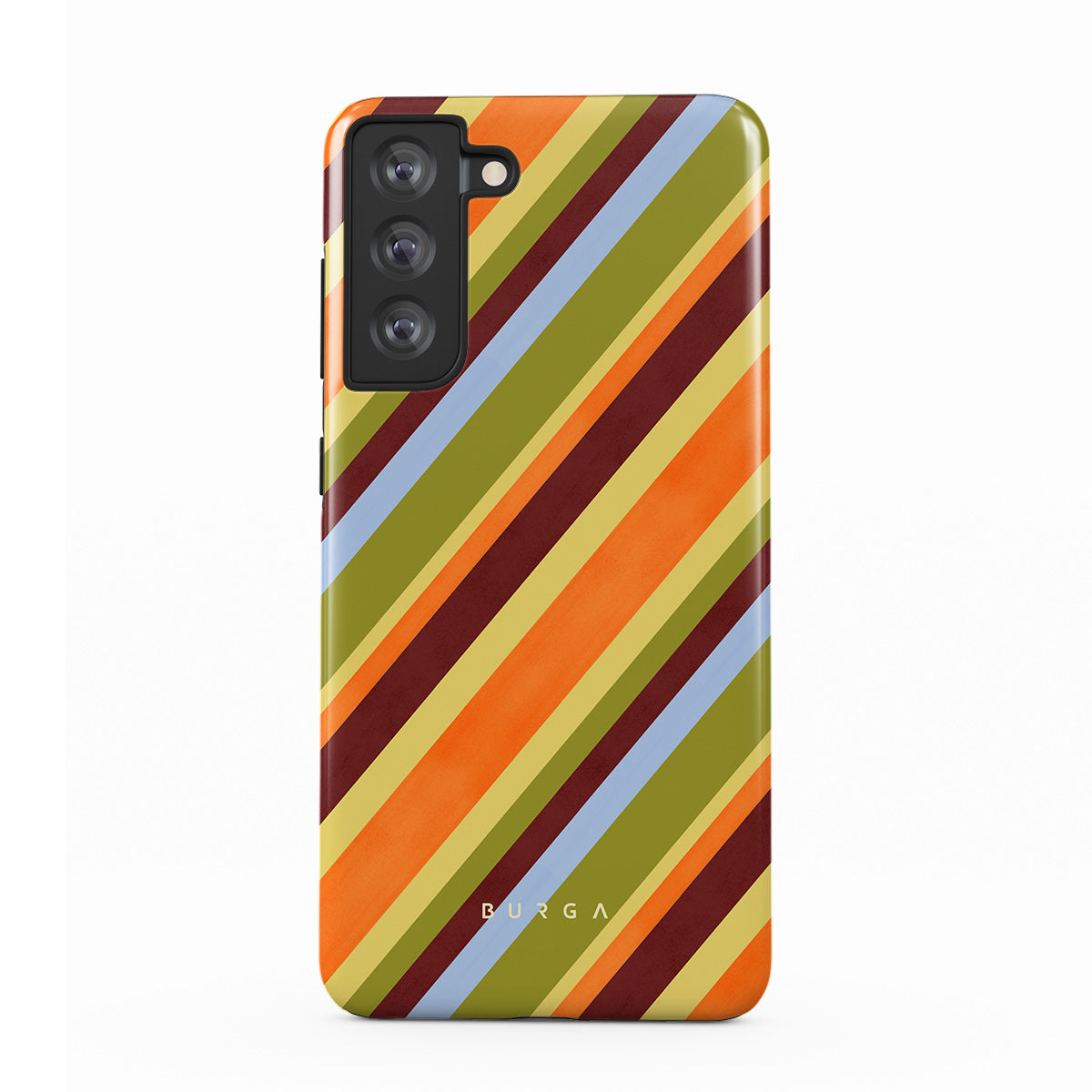 The kind of stripes you’d find on a beach towel left out since noon. Citrus meets spice meets “where’s my other sandal?” The Copacabana Samsung Galaxy S21 FE phone case design: it’s carefree with a side of extra.
