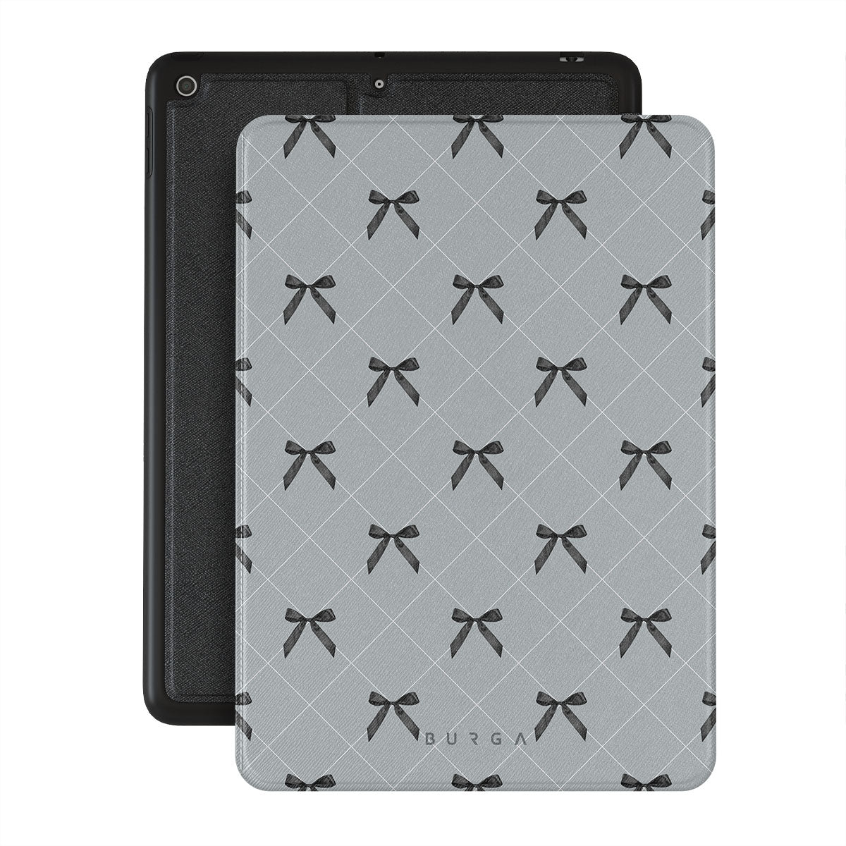 A subtle hint to a world of dance and soft melodies. Crisscrossing bows over a muted gray tone capture the flirtatious essence of the coquette-core aesthetic. Playful and sweet, our Coquette iPad 10.2 (9th/8th/7th Gen) folio case design is perfect for those who find beauty in the details.
