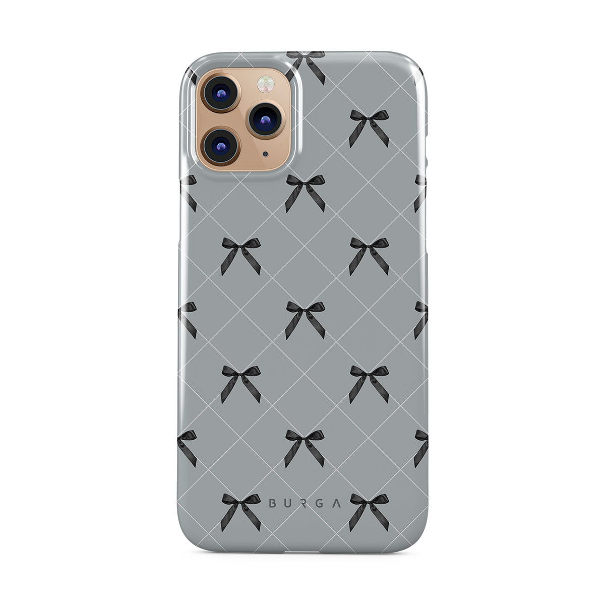 A subtle hint to a world of dance and soft melodies. Crisscrossing bows over a muted gray tone capture the flirtatious essence of the coquette-core aesthetic. Playful and sweet, our Coquette iPhone 11 Pro Max phone case design is perfect for those who find beauty in the details.