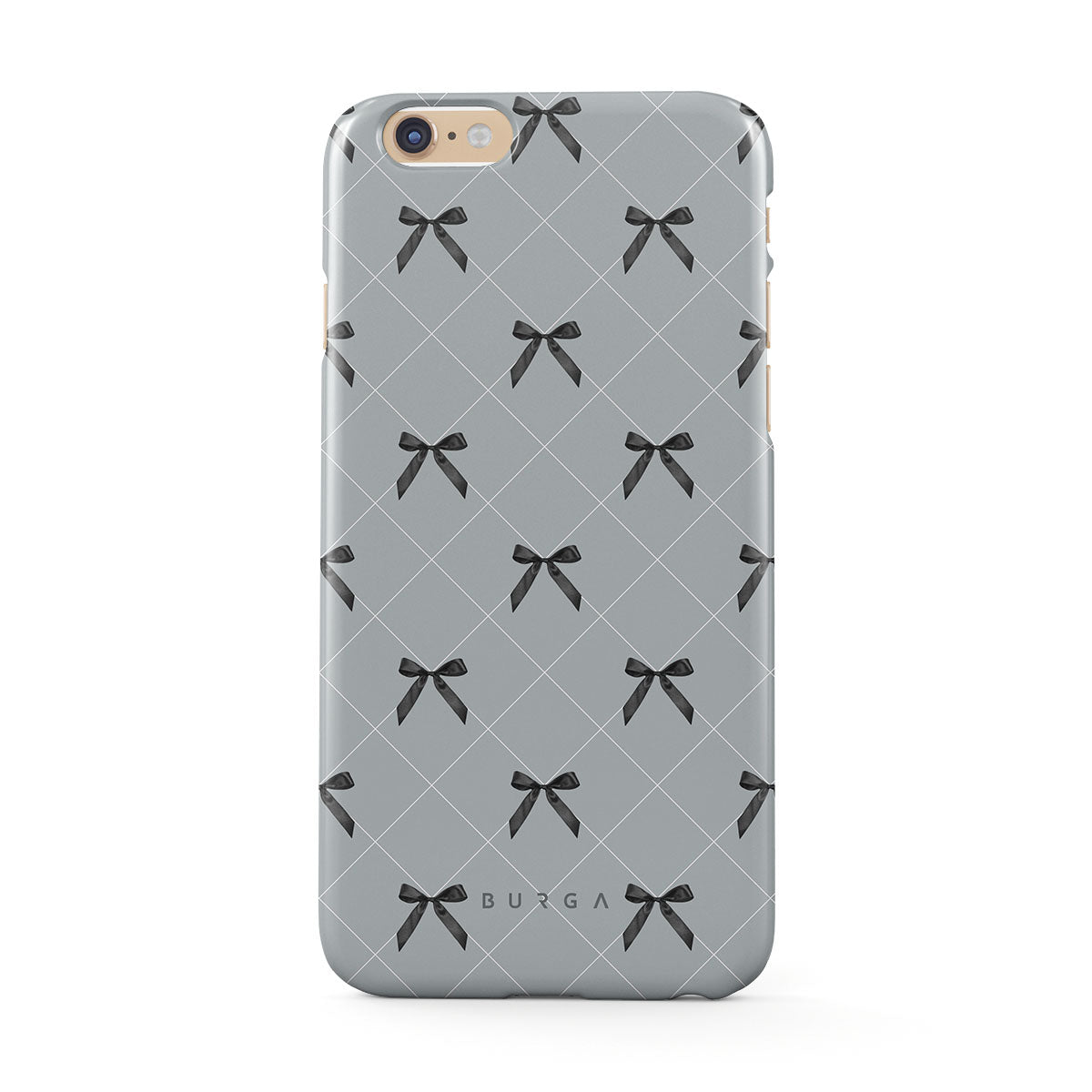 A subtle hint to a world of dance and soft melodies. Crisscrossing bows over a muted gray tone capture the flirtatious essence of the coquette-core aesthetic. Playful and sweet, our Coquette iPhone 6 / 6S phone case design is perfect for those who find beauty in the details.