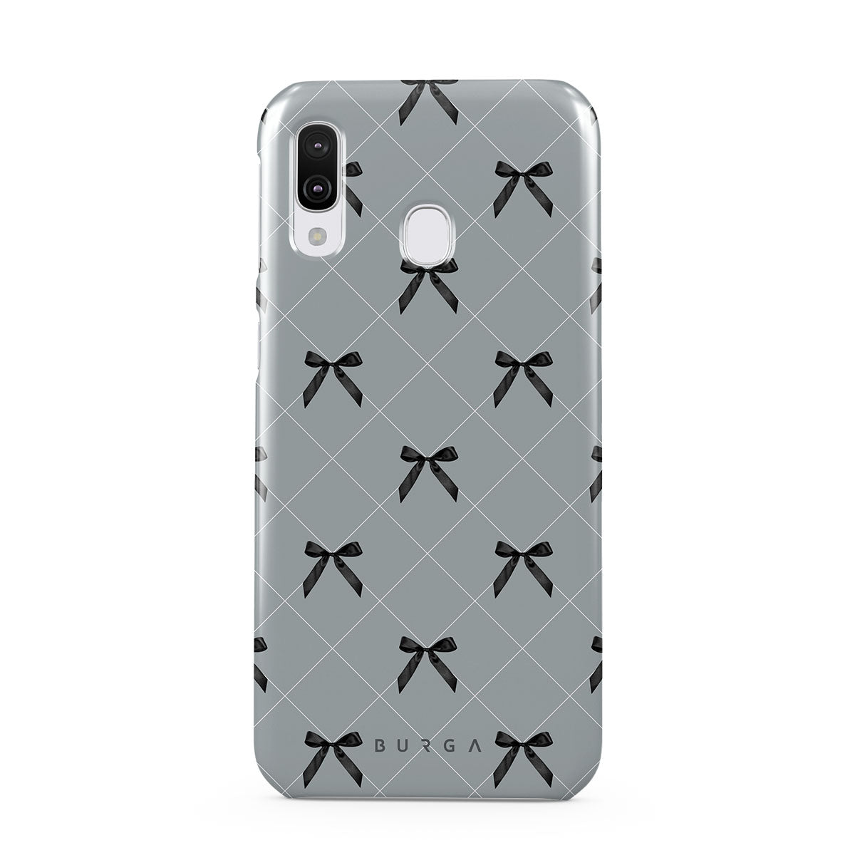 A subtle hint to a world of dance and soft melodies. Crisscrossing bows over a muted gray tone capture the flirtatious essence of the coquette-core aesthetic. Playful and sweet, our Coquette Samsung Galaxy A40 phone case design is perfect for those who find beauty in the details.