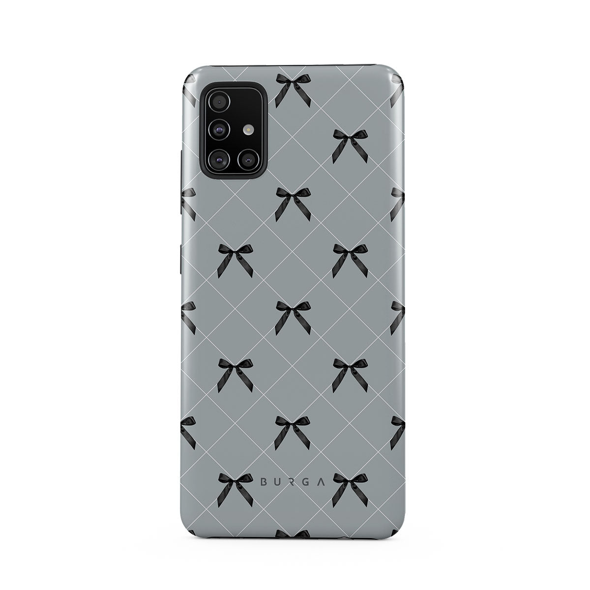 A subtle hint to a world of dance and soft melodies. Crisscrossing bows over a muted gray tone capture the flirtatious essence of the coquette-core aesthetic. Playful and sweet, our Coquette Samsung Galaxy A51 4G phone case design is perfect for those who find beauty in the details.