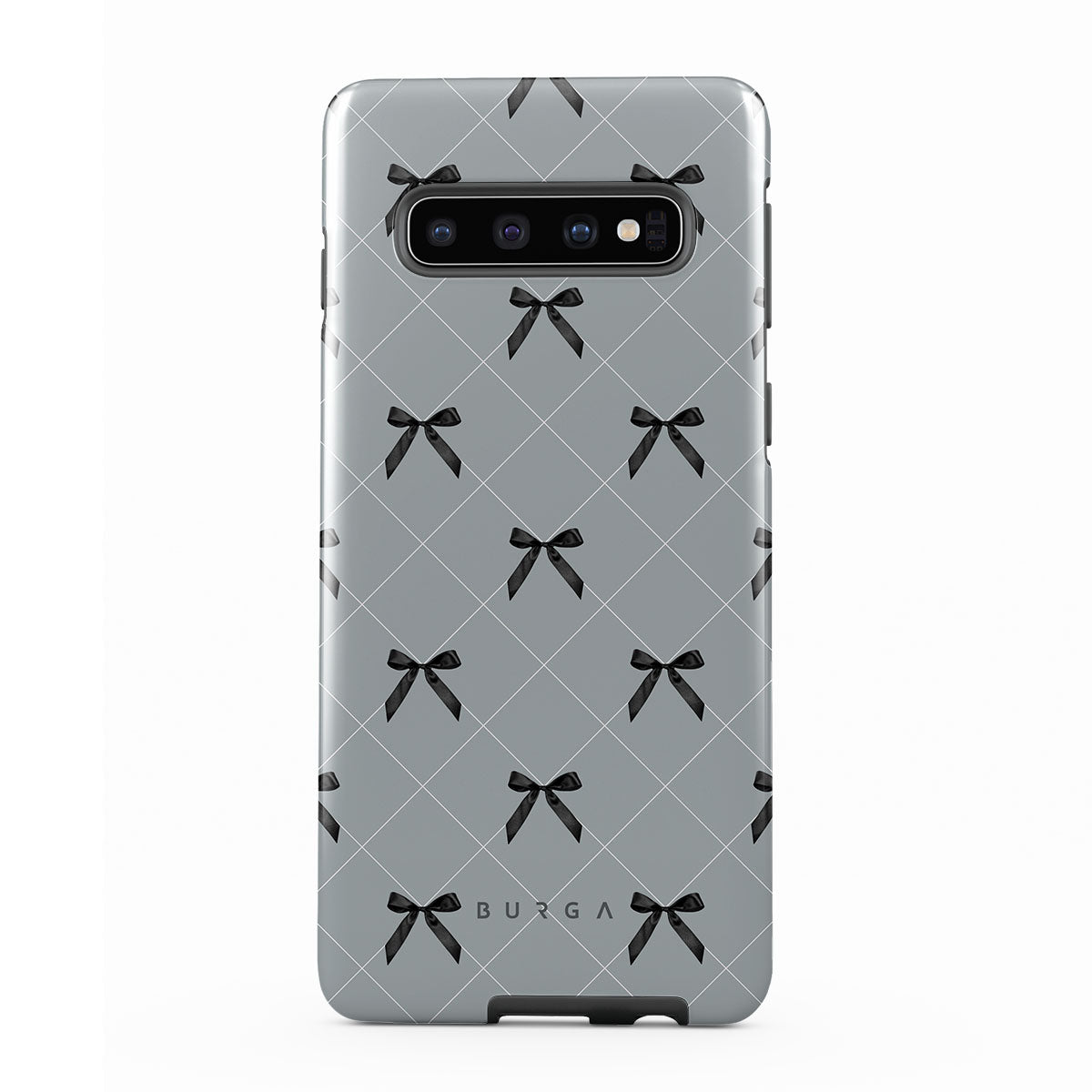 A subtle hint to a world of dance and soft melodies. Crisscrossing bows over a muted gray tone capture the flirtatious essence of the coquette-core aesthetic. Playful and sweet, our Coquette Samsung Galaxy S10 4G phone case design is perfect for those who find beauty in the details.