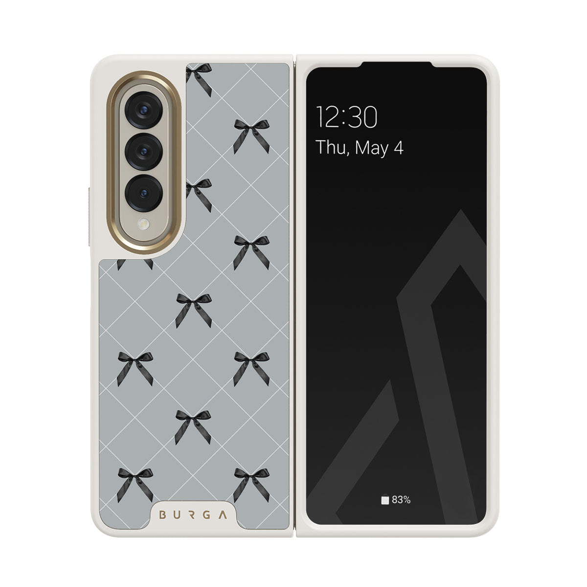 A subtle hint to a world of dance and soft melodies. Crisscrossing bows over a muted gray tone capture the flirtatious essence of the coquette-core aesthetic. Playful and sweet, our Coquette Samsung Galaxy Z Fold 4 phone case design is perfect for those who find beauty in the details.