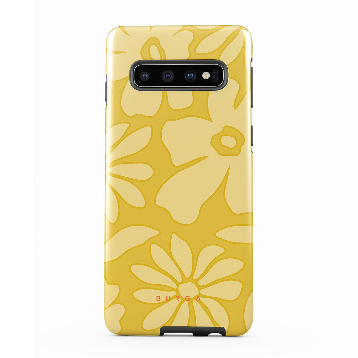 Our bright yellow Samsung Galaxy S10 4G phone case features bold, beautiful flowers that evoke a sense of nostalgia and happiness. This cheerful floral design captures the essence of joyful moments, making your device a reminder of sunny memories. Perfect for brightening up your day.