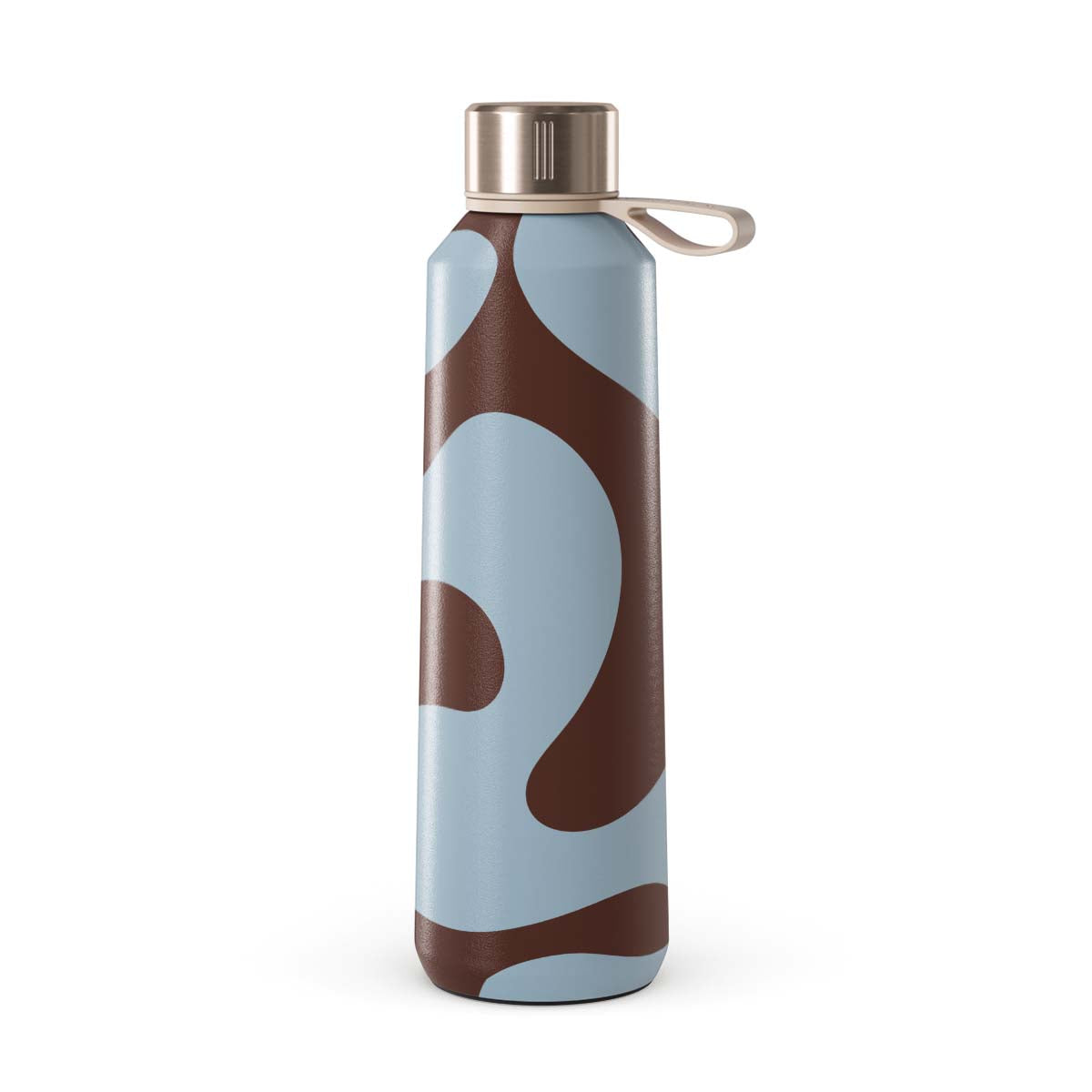 This design features: waves, abstract pattern, brown swirls, light blue swirls.