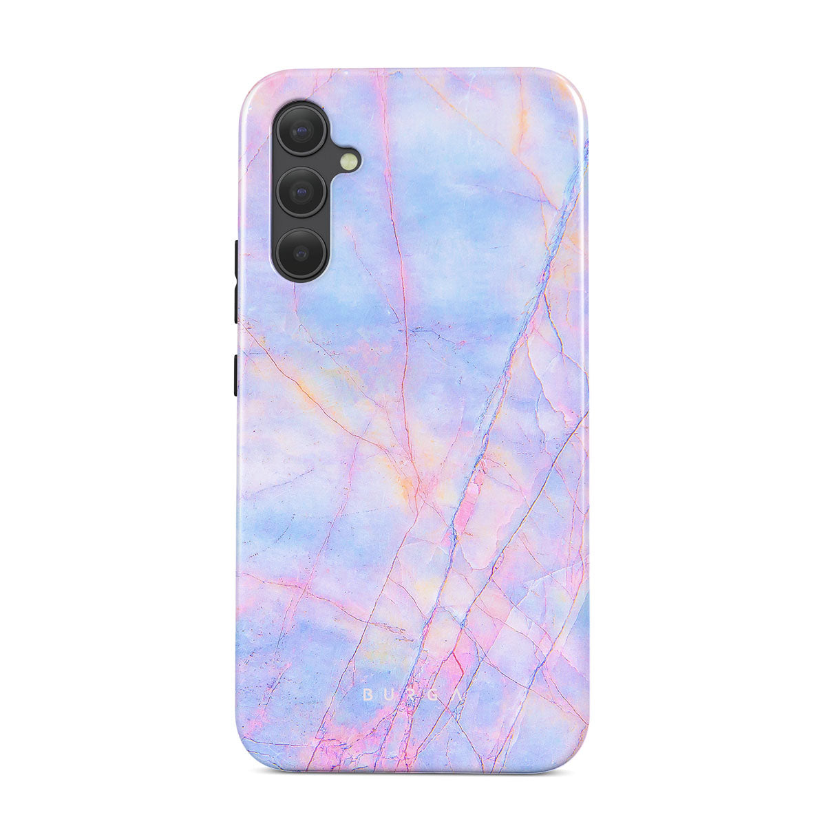 Sweet, fluffy, and dissolves so easily. Take a soft pastel Samsung Galaxy A34 phone case inspired by the cotton candy to remind you of the rides in the Ferris wheel. Do not let the delicate look deceive you, as this case still offers heavy-duty protection for your phone.