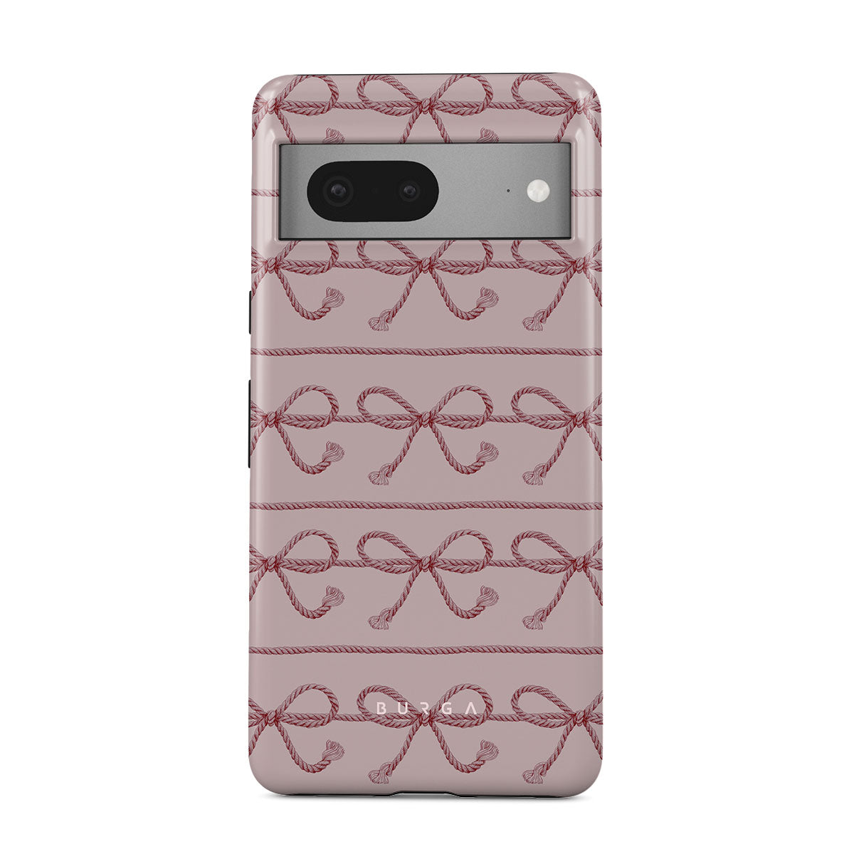 This design features: pink bows, pink background, ropes, playful pattern.