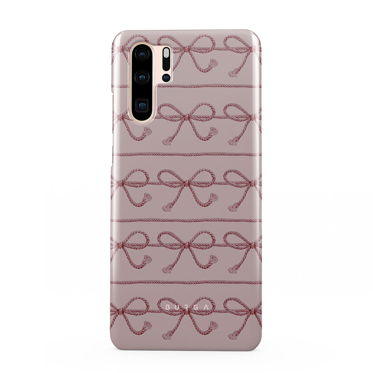 This design features: pink bows, pink background, ropes, playful pattern.