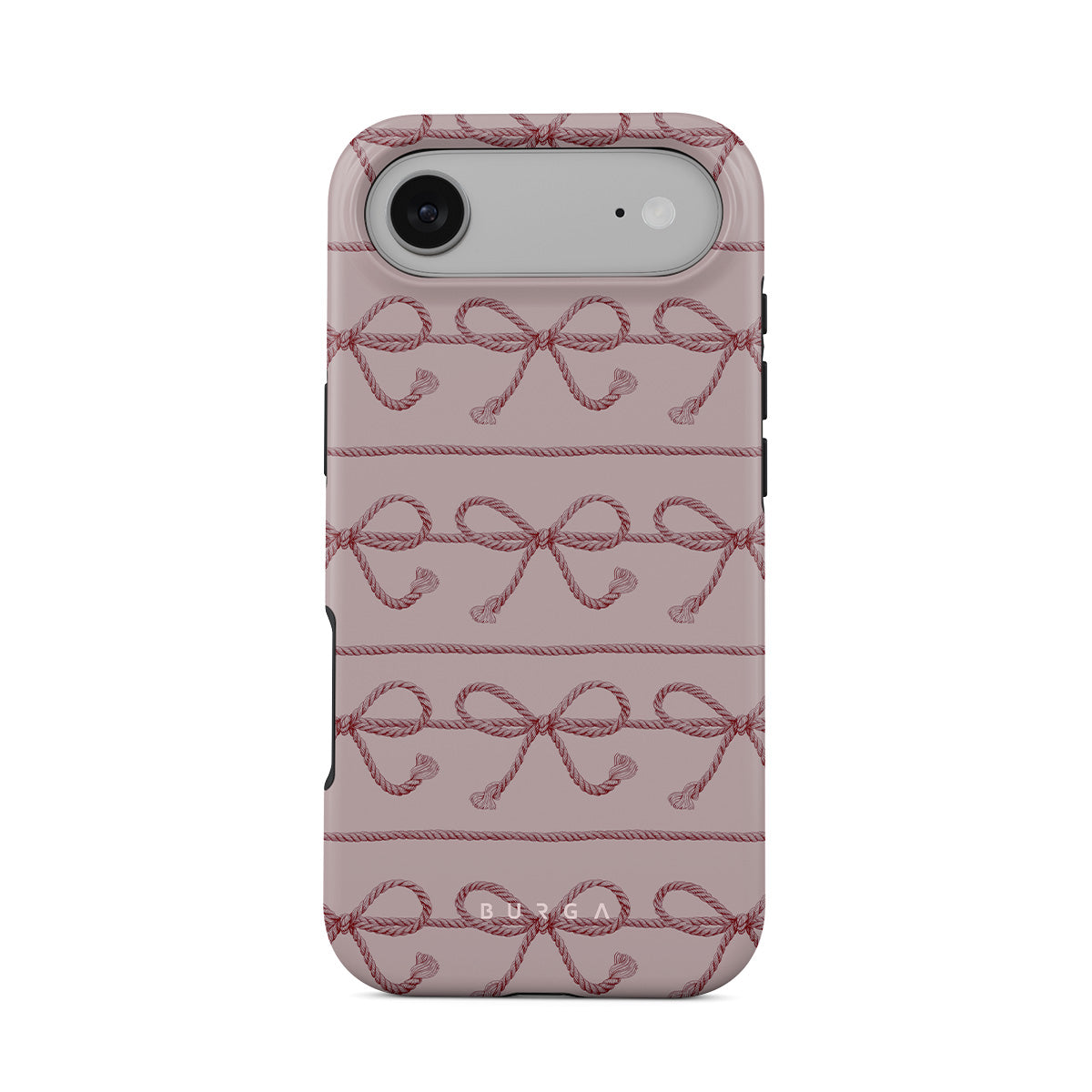This design features: pink bows, pink background, ropes, playful pattern.