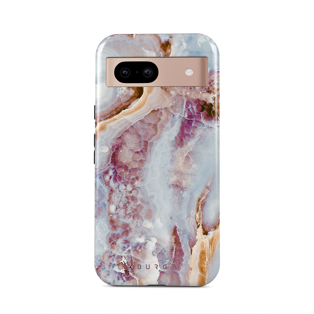 What frost can create on the surfaces is perfectly imperfect. The cute marble pattern of our hard-shell Google Pixel 8a phone case inspired by the frozen leaves adds a splash of color in a dreamy blue background, becoming a beautiful part of anyone's style.