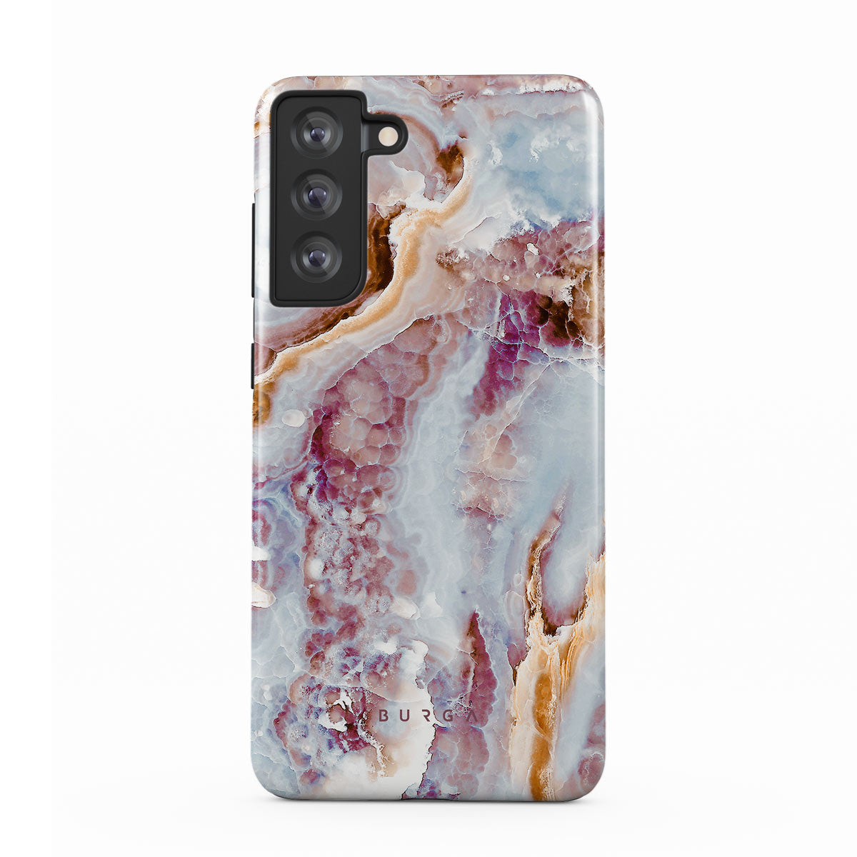 What frost can create on the surfaces is perfectly imperfect. The cute marble pattern of our hard-shell Samsung Galaxy S21 FE phone case inspired by the frozen leaves adds a splash of color in a dreamy blue background, becoming a beautiful part of anyone's style.