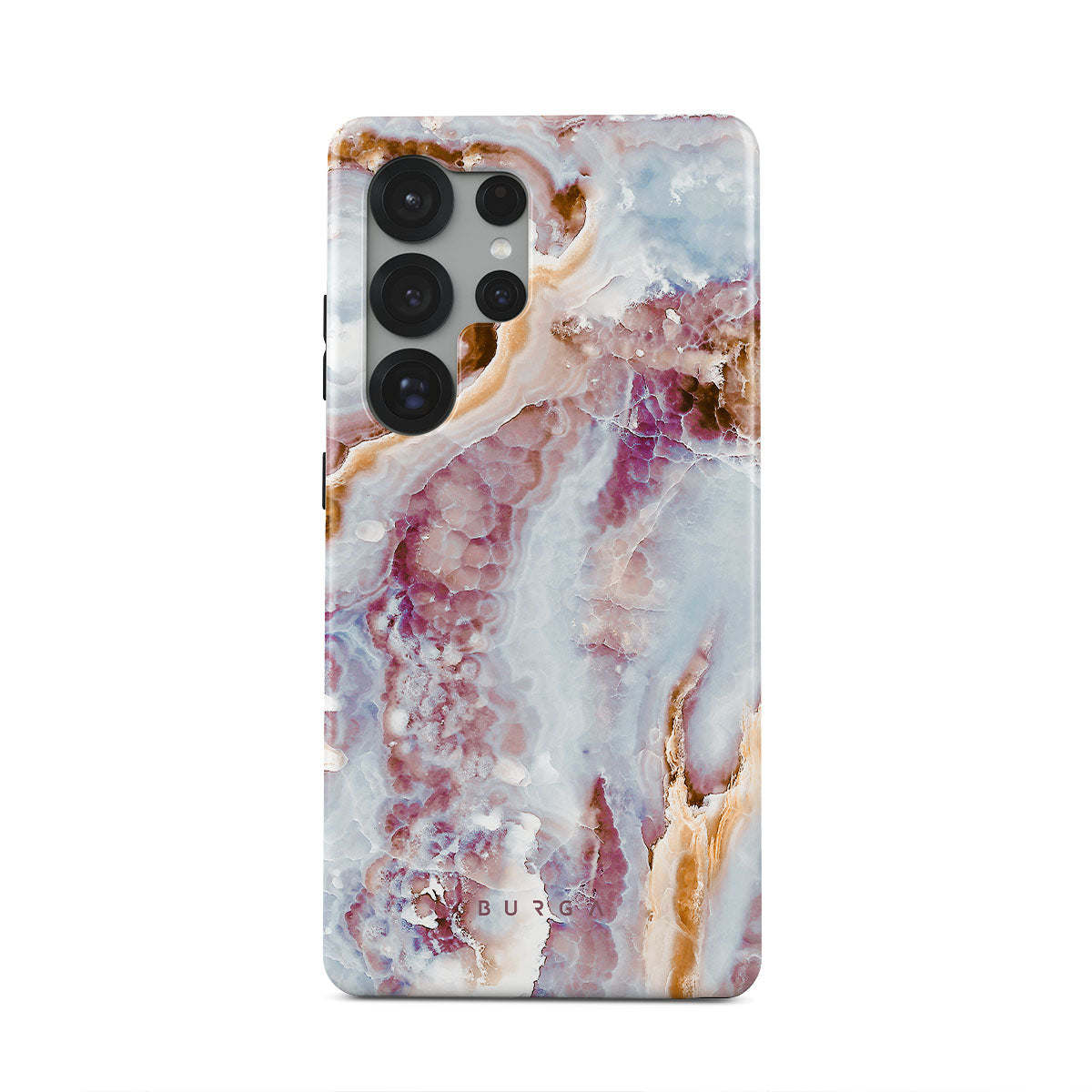 What frost can create on the surfaces is perfectly imperfect. The cute marble pattern of our hard-shell Samsung Galaxy S25 Ultra phone case inspired by the frozen leaves adds a splash of color in a dreamy blue background, becoming a beautiful part of anyone's style.