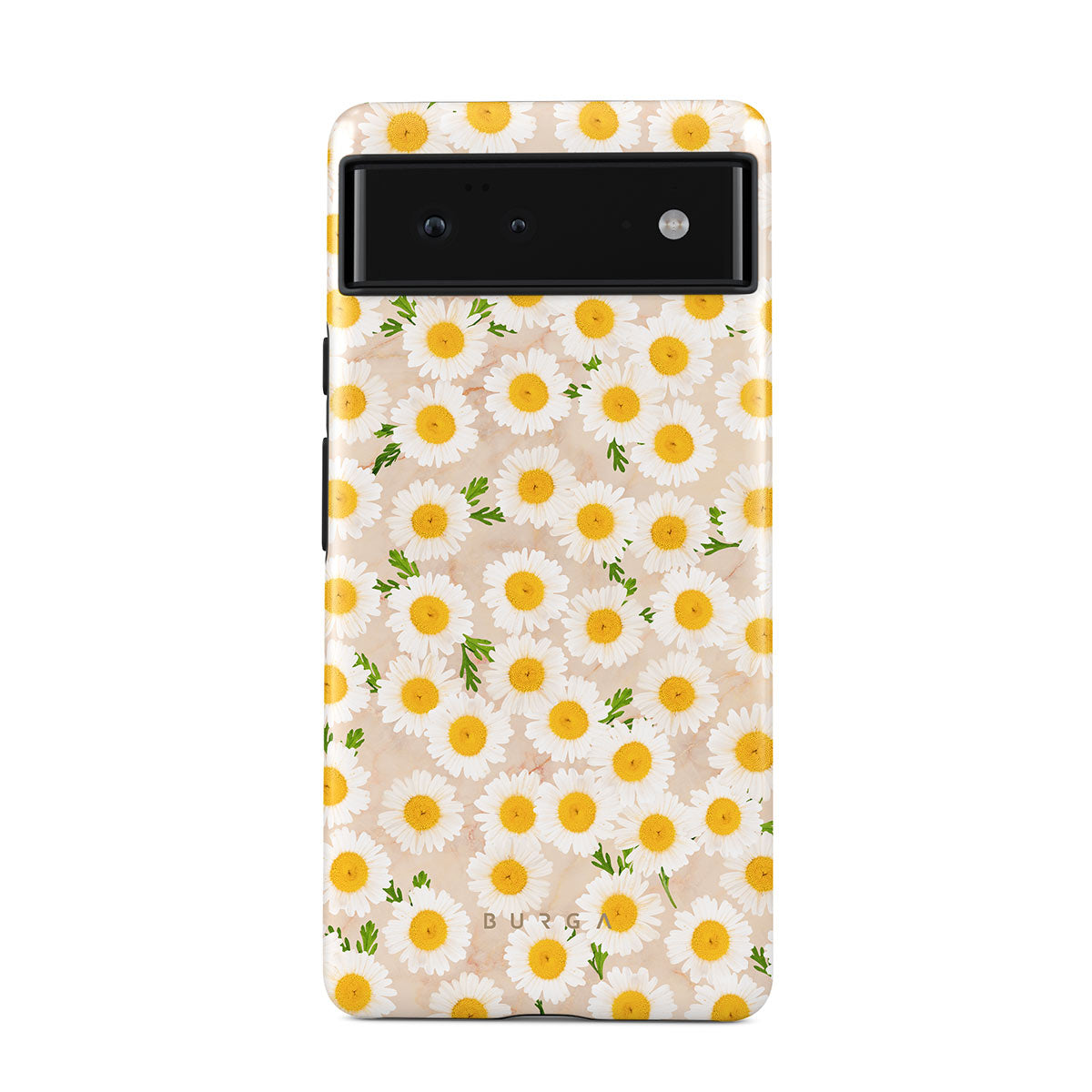 The smell of the Daisies surrounding you, memories of "Loves me, loves me not," and the smile it gives you. Feel free to look, to smell. Take this blissful moment with your daisy inspired Google Pixel 6 phone case whenever you need a little relaxation or when you want to simply enjoy the moment while protecting your phone.
